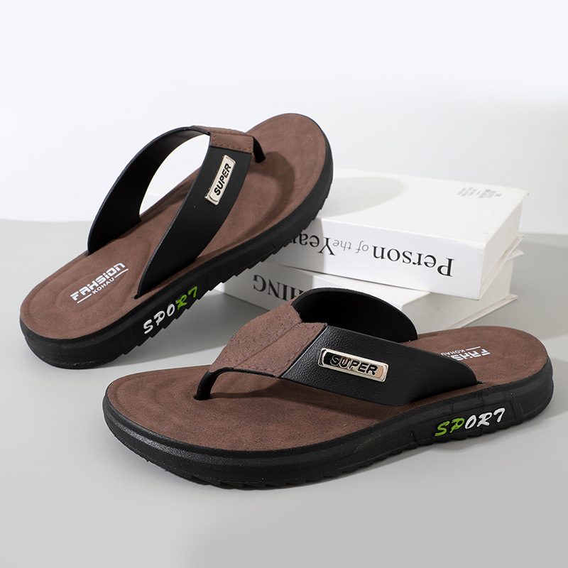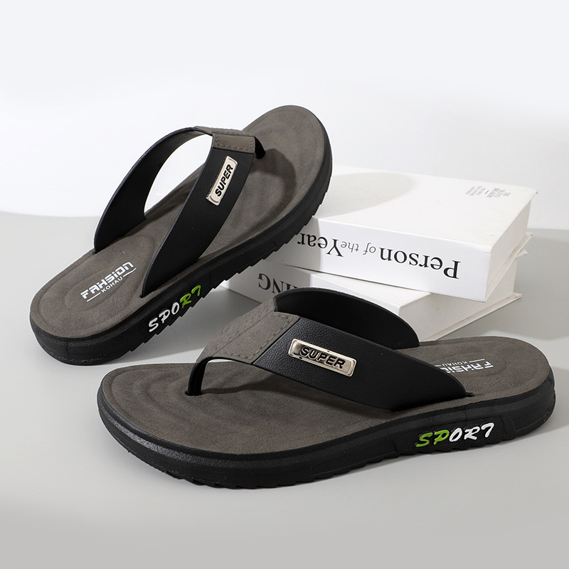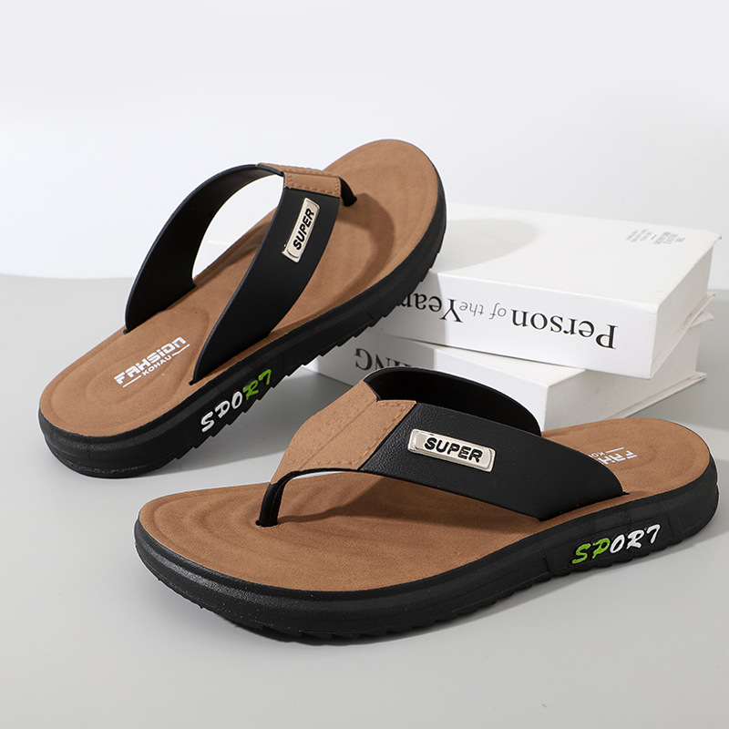 人字拖男款防滑耐磨夹脚厚底休闲外穿皮革软底沙滩凉拖鞋休闲舒适