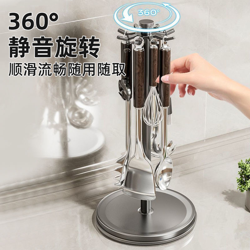 厨房多功能旋转锅铲架台面家用挂钩置物架勺子铲子收纳架汤勺厨具
