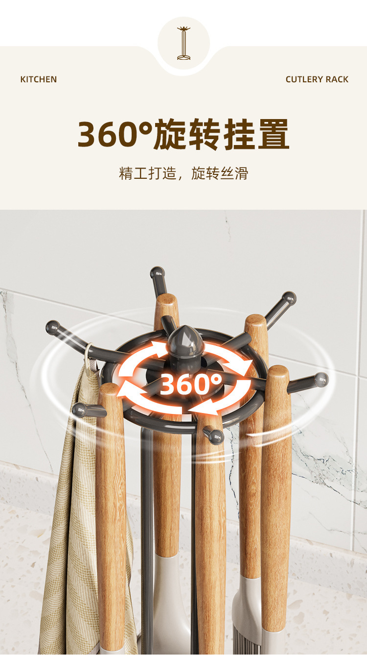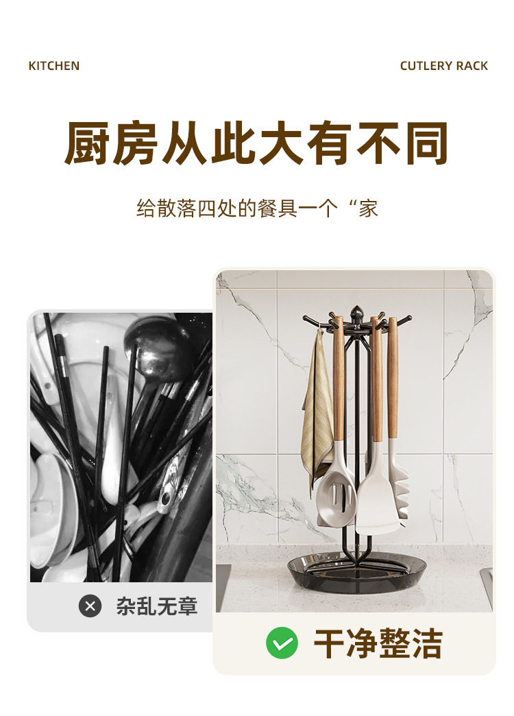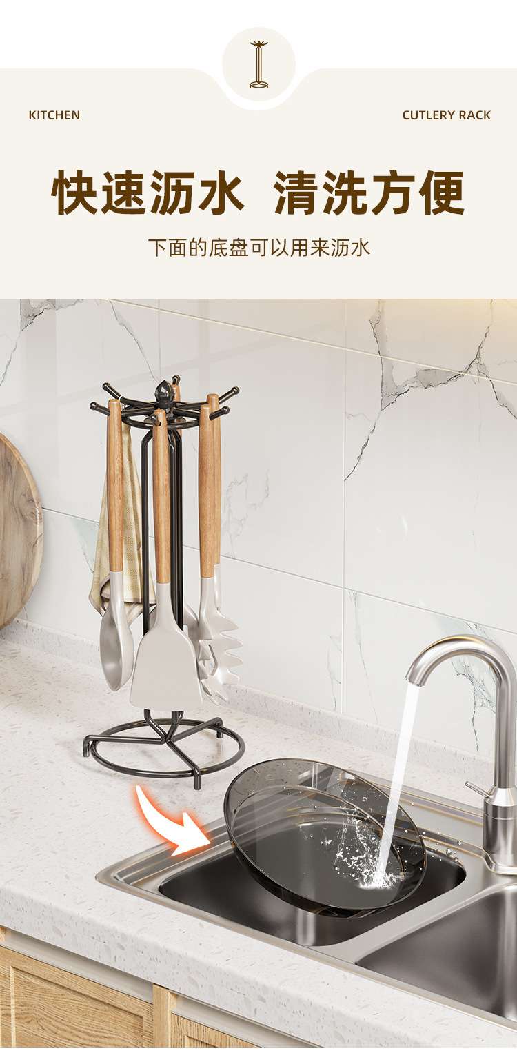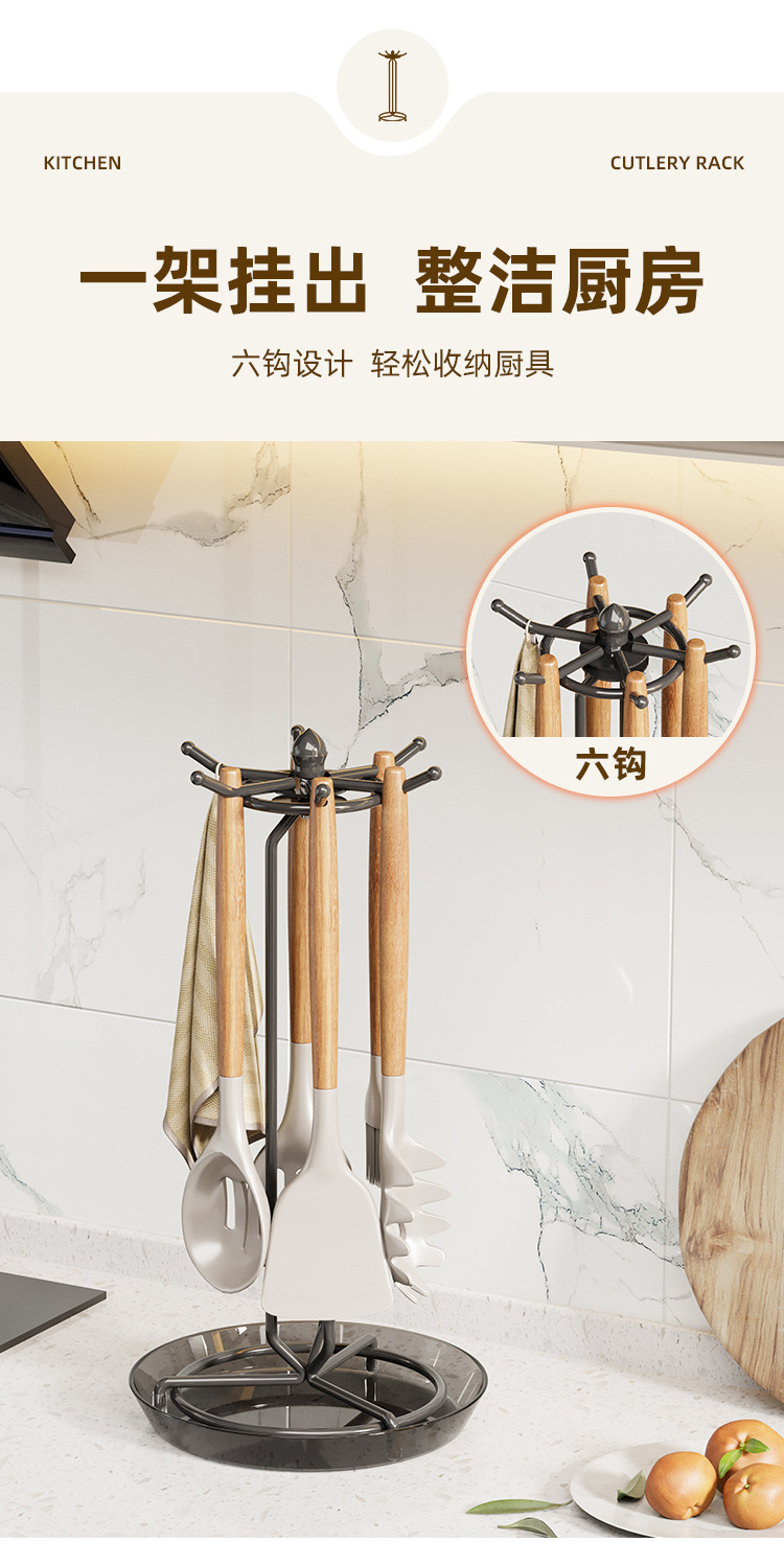 旋转锅铲置物架厨房台面挂勺子铲子的架子挂钩托厨具汤勺收纳挂架