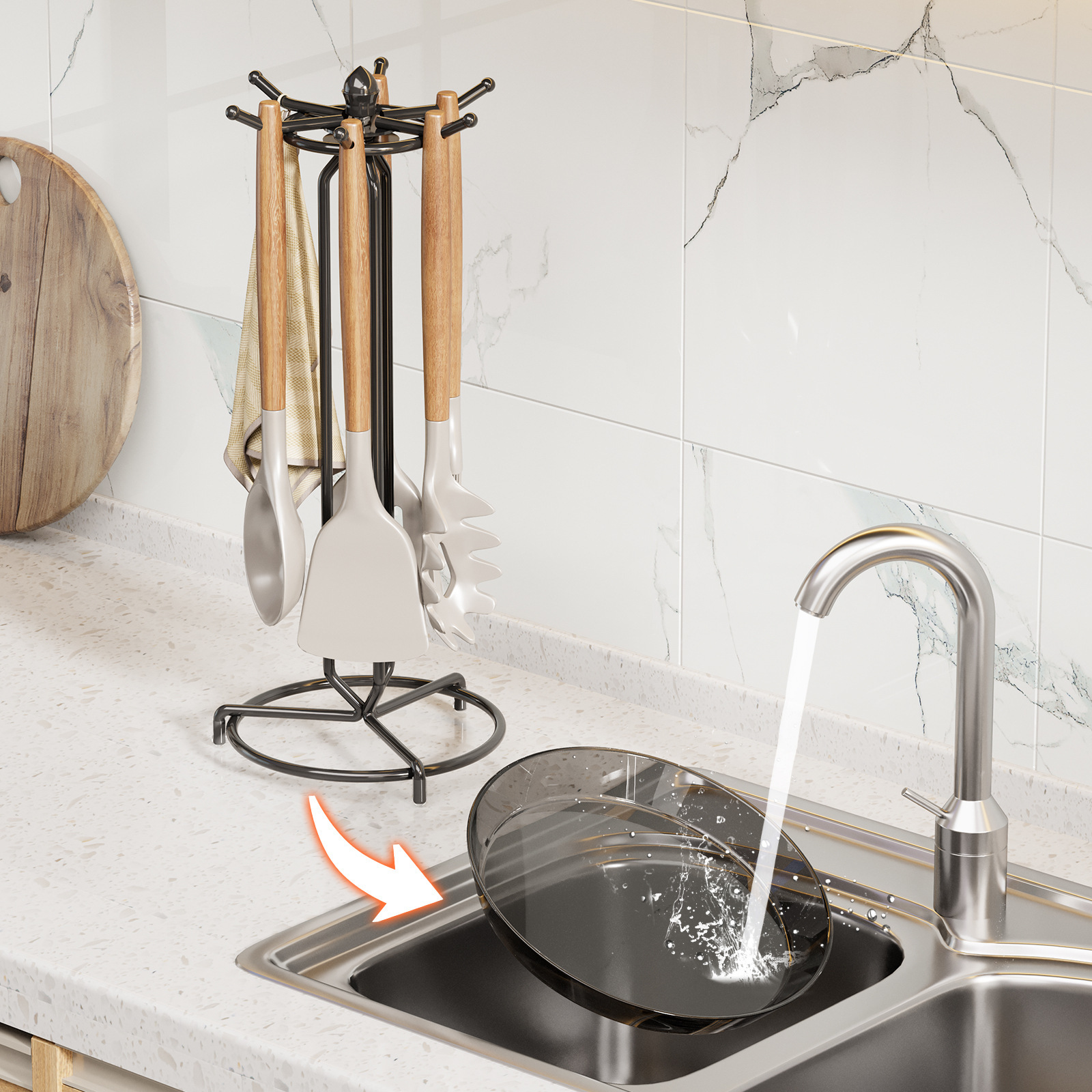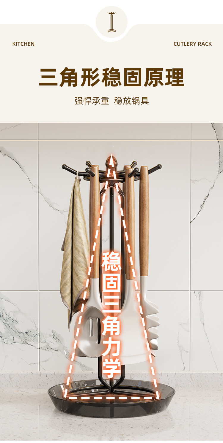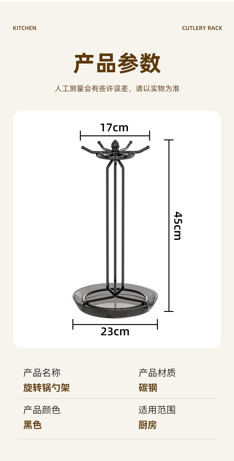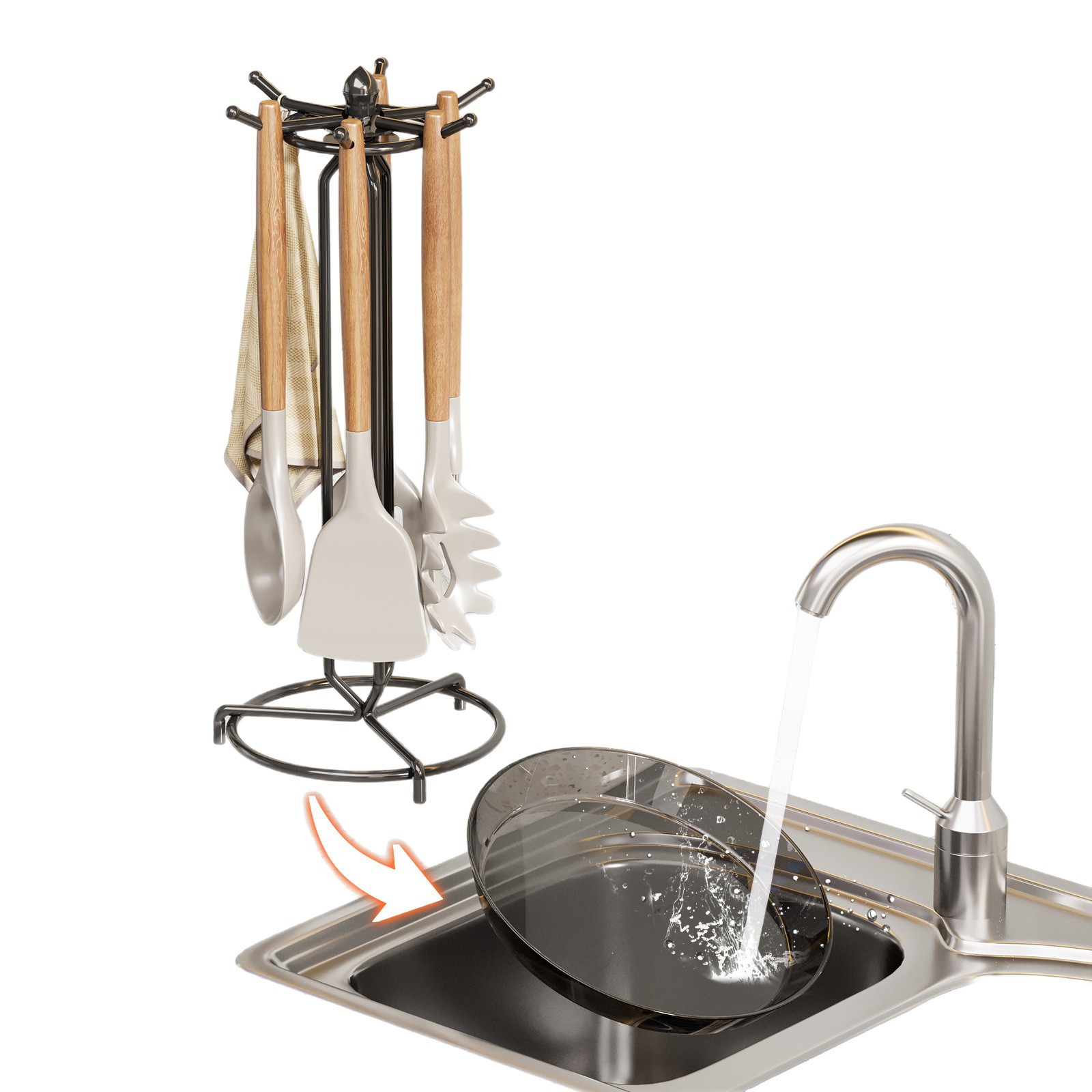 旋转锅铲置物架厨房台面挂勺子铲子的架子挂钩托厨具汤勺收纳挂架