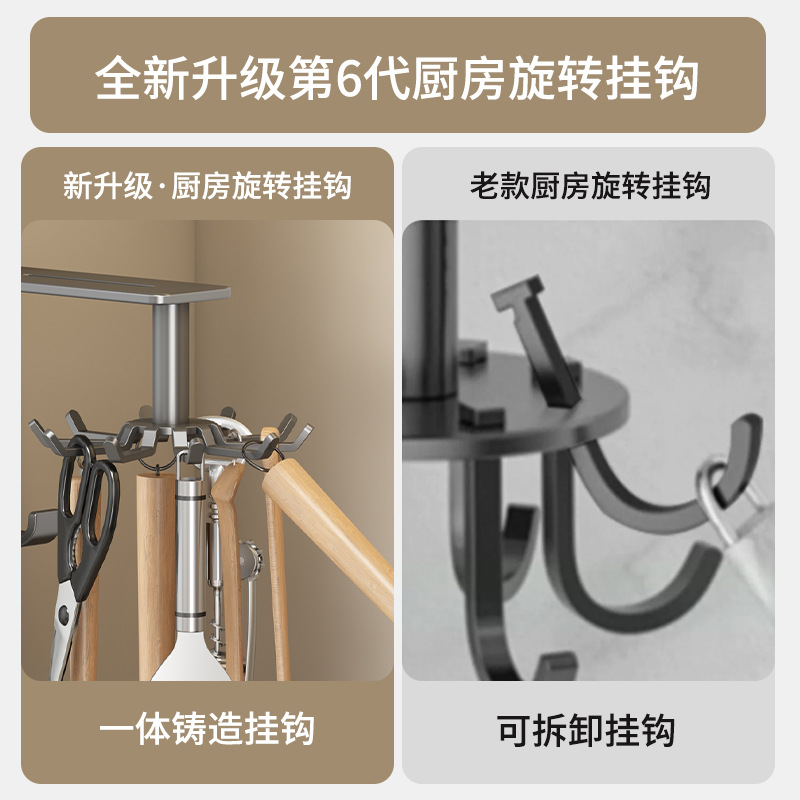 厨房旋转挂钩多功能免打孔壁挂式置物架锅铲收纳勺子铲子挂架