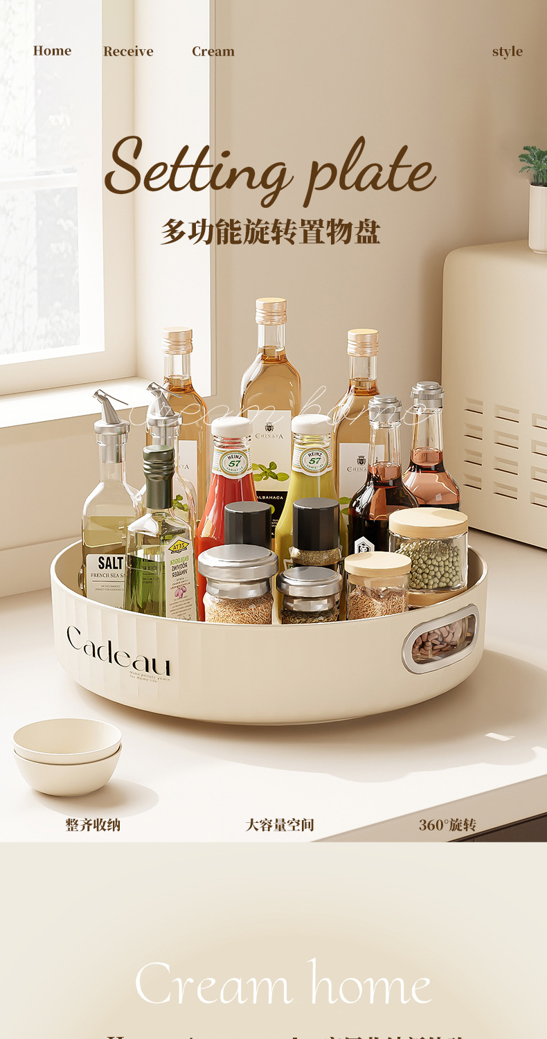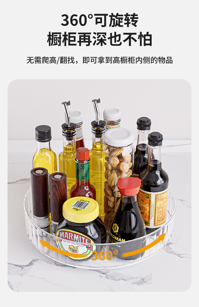 厨房调料旋转收纳架卧室台面化妆品收纳托盘多功能家用好物置物架