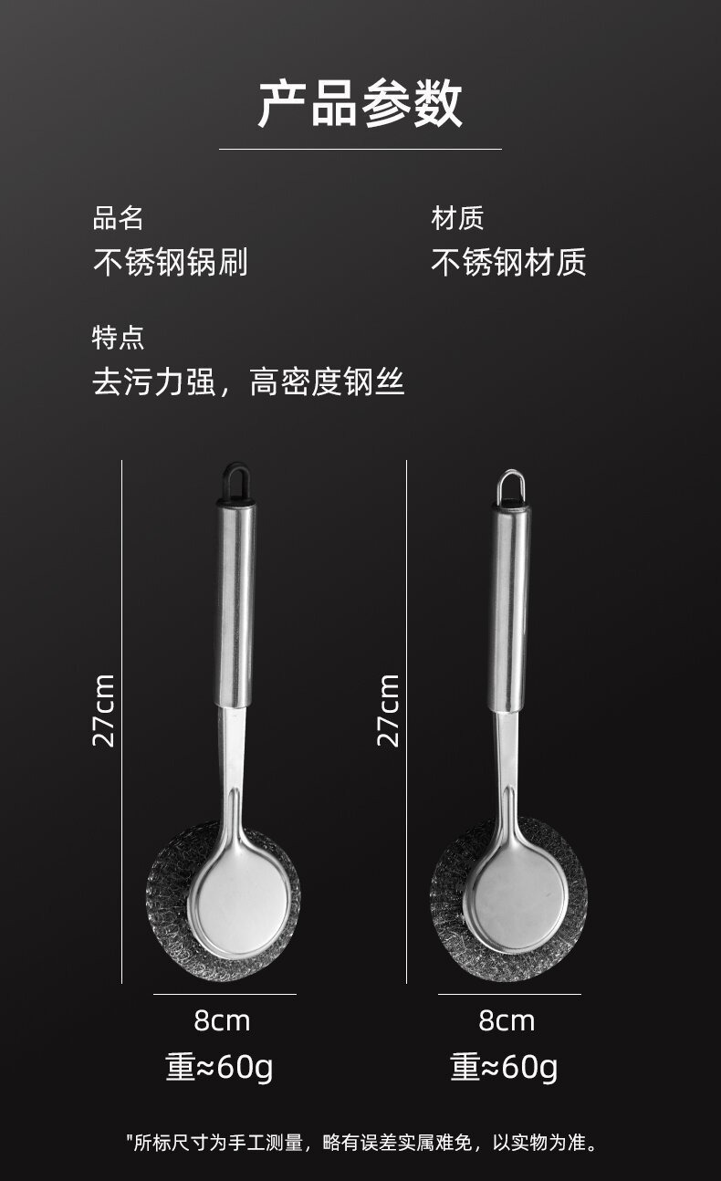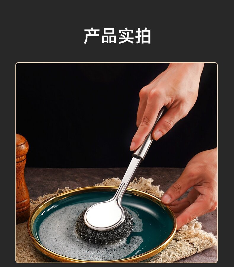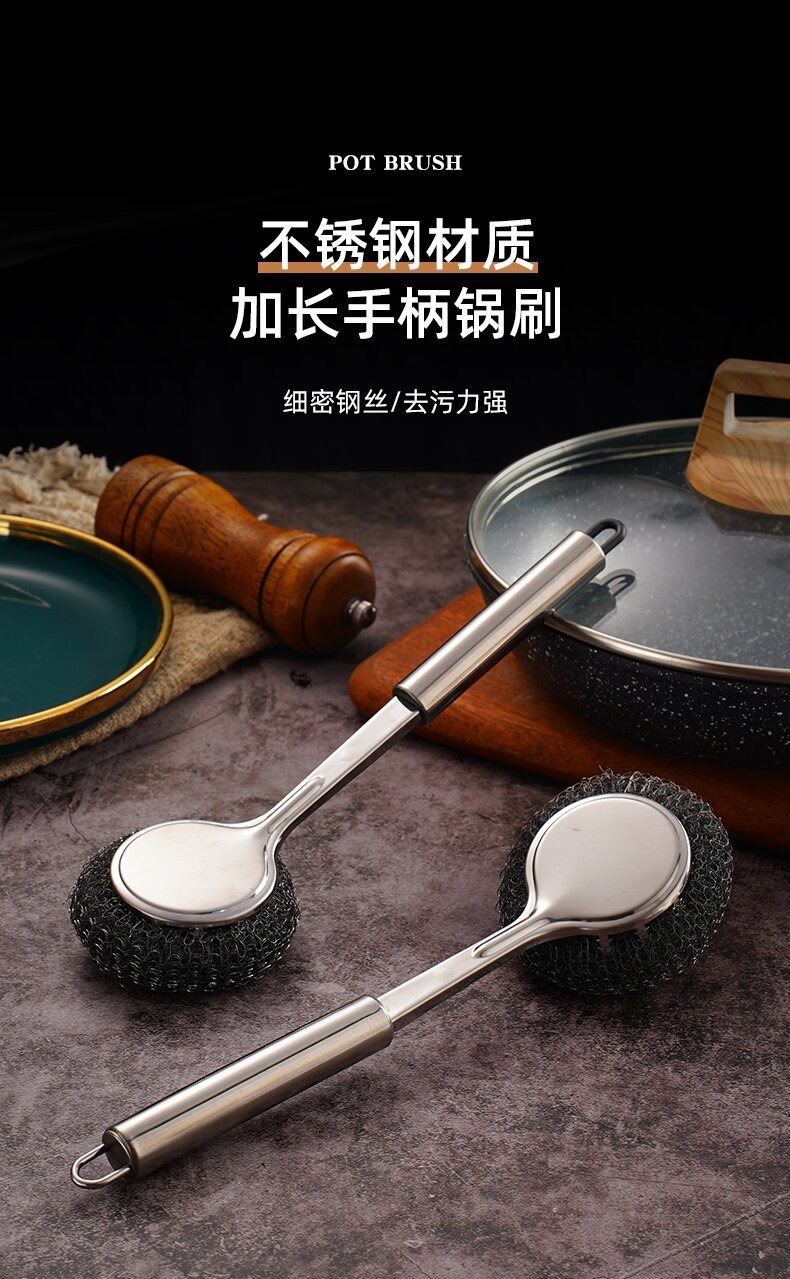 厨房不锈钢长柄洗锅刷洗碗清洁刷子家用大号钢丝球洗碗锅刷锅神器