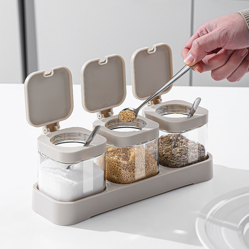 三个装不锈钢调料罐+勺子+贴纸+底座
