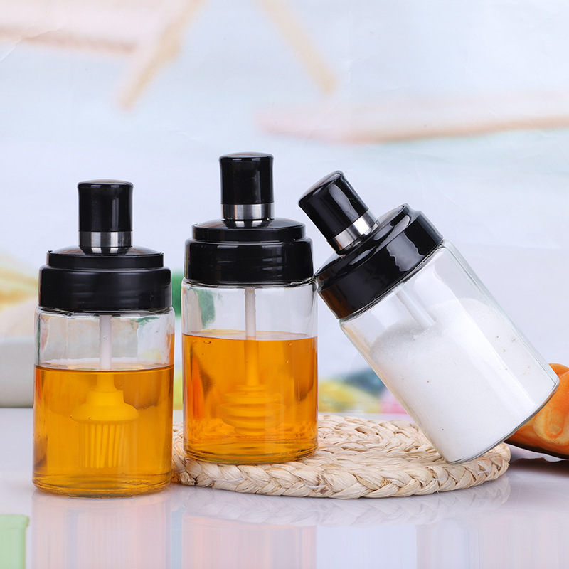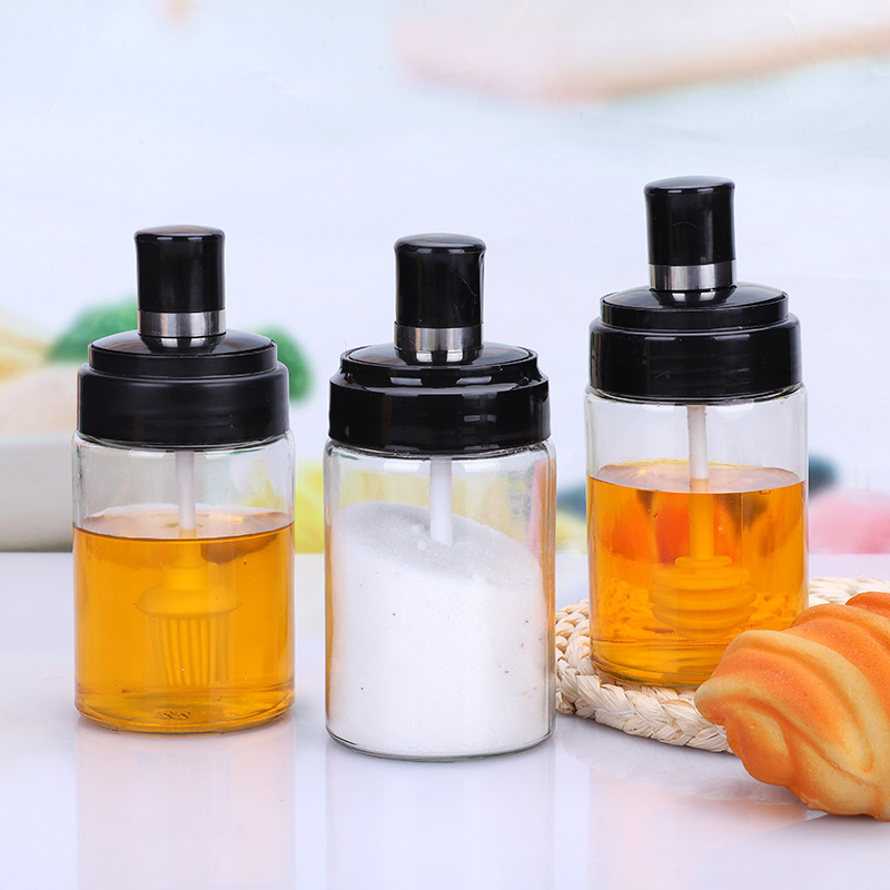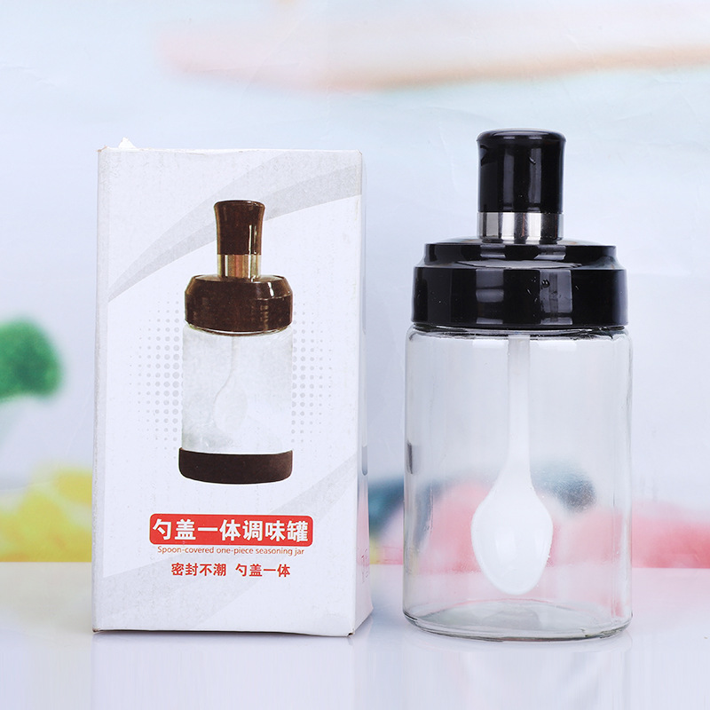 玻璃调料瓶厨房用品调料罐防潮勺盖一体调料瓶套装调料盒控盐瓶