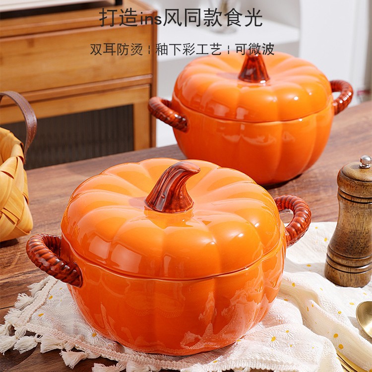 南瓜陶瓷汤碗带盖泡面碗吃螺蛳粉的大碗家用