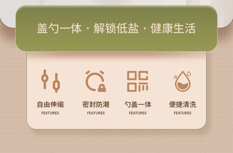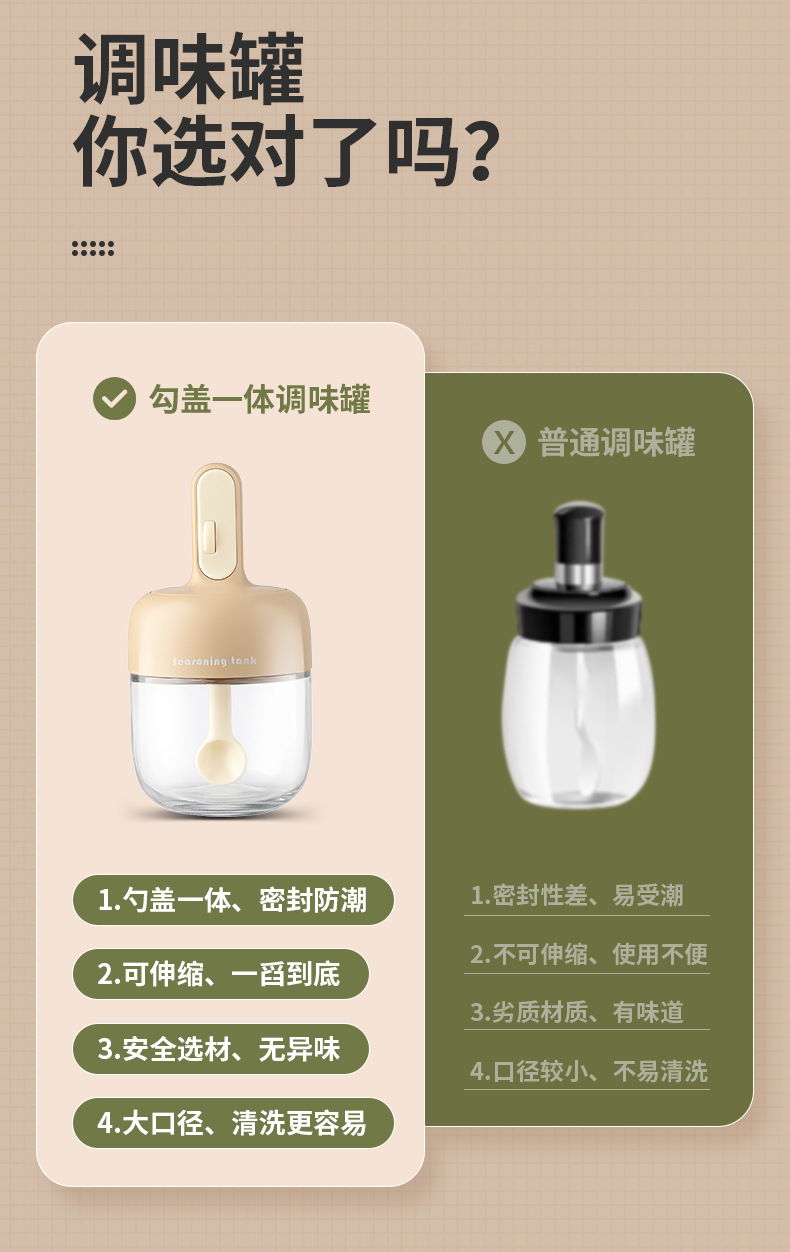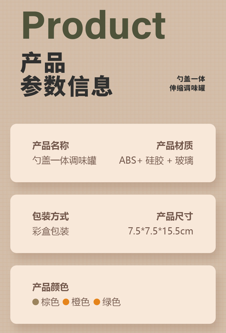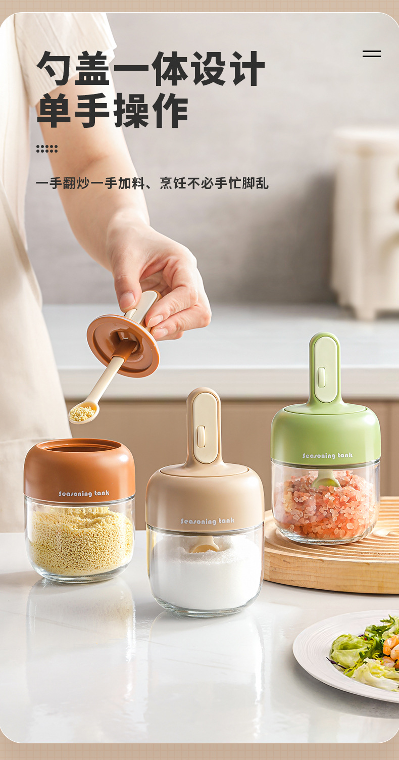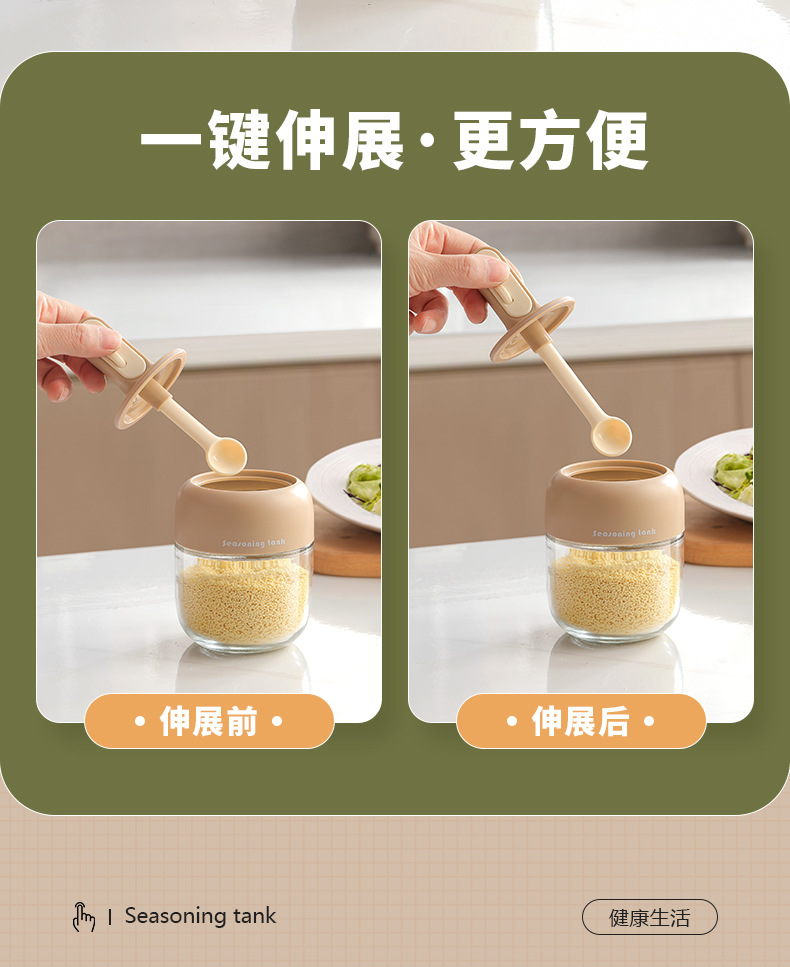 伸缩调料罐厨房勺盖一体调料瓶家用定量密封调味瓶盐罐调料瓶套装