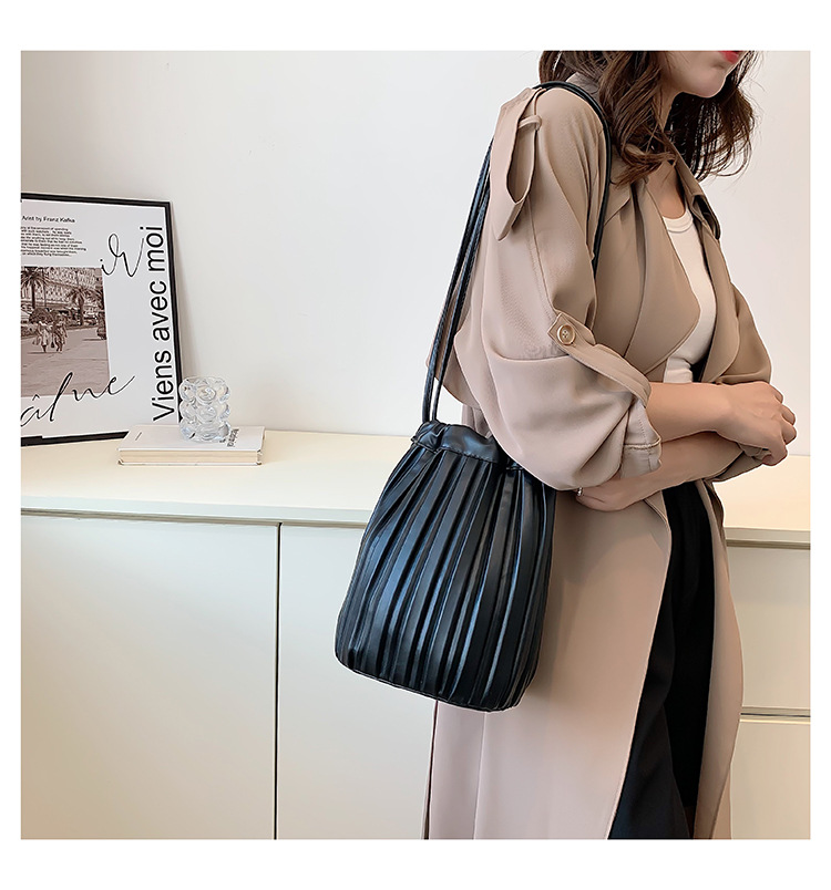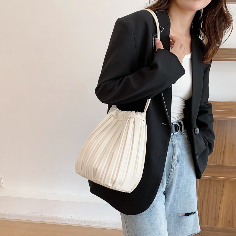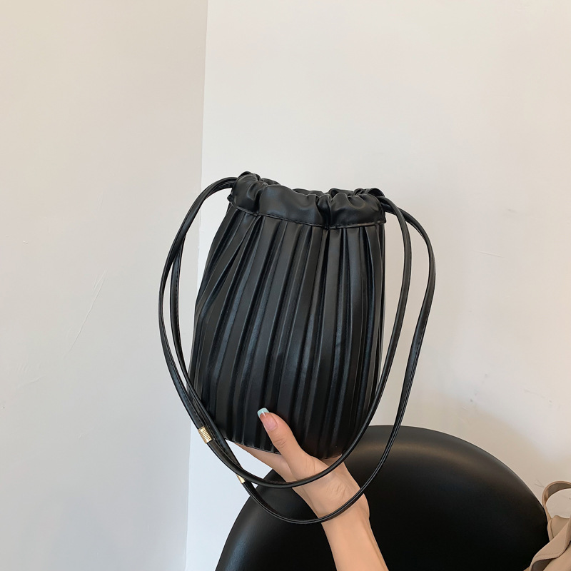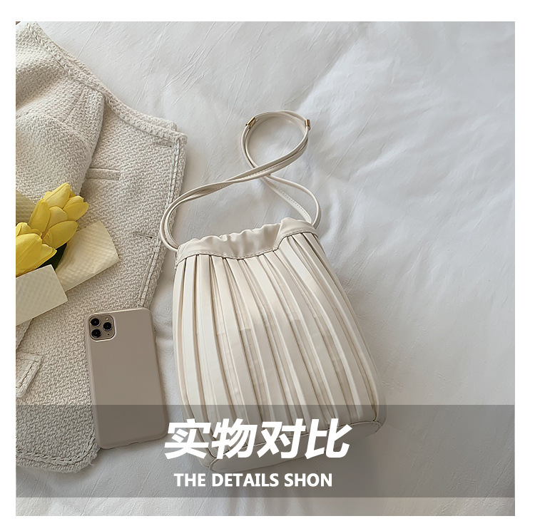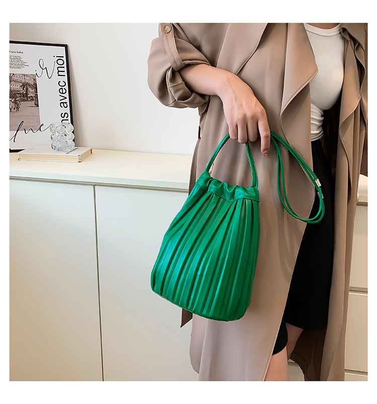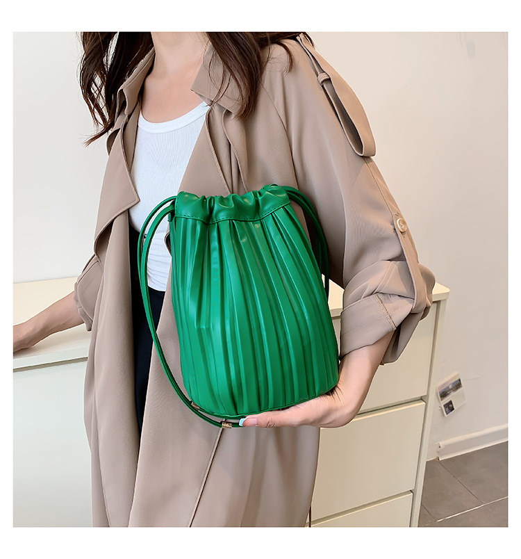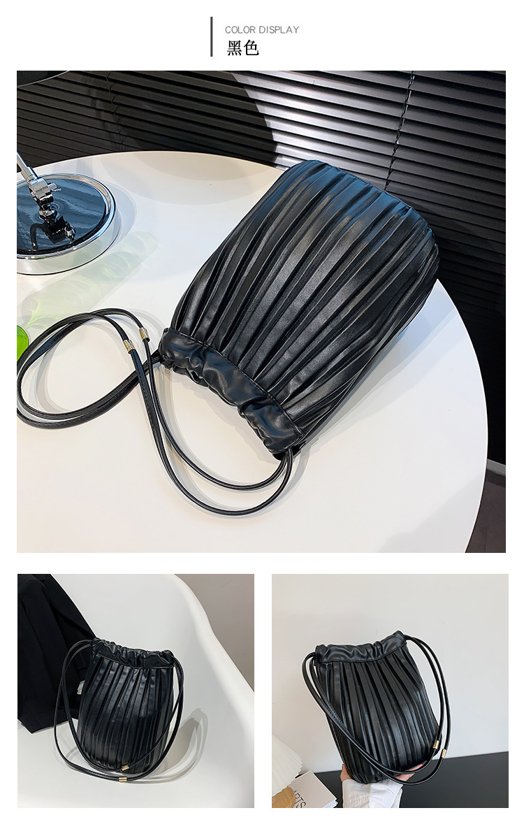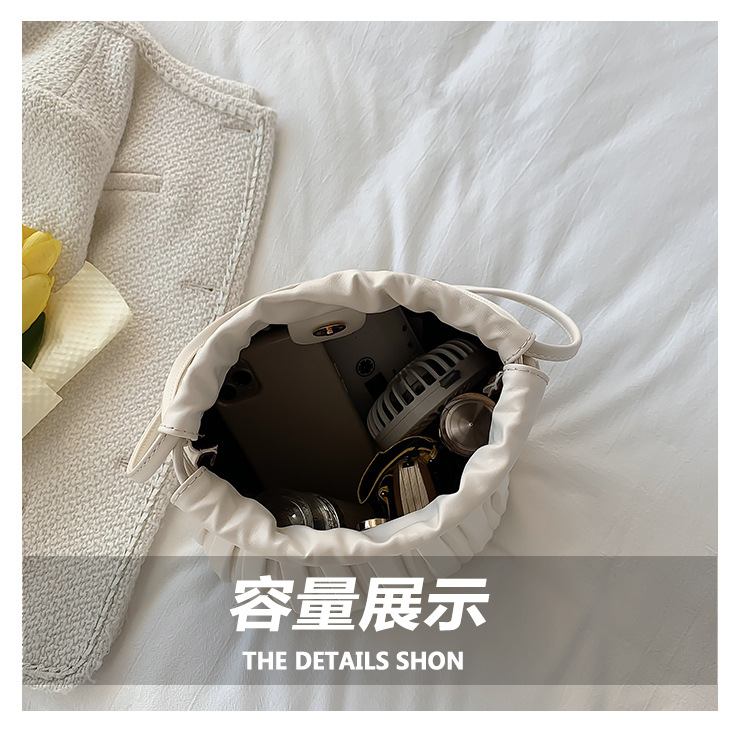 高级感时尚个性设计褶皱包包女夏新款小众洋气单肩百搭水桶包