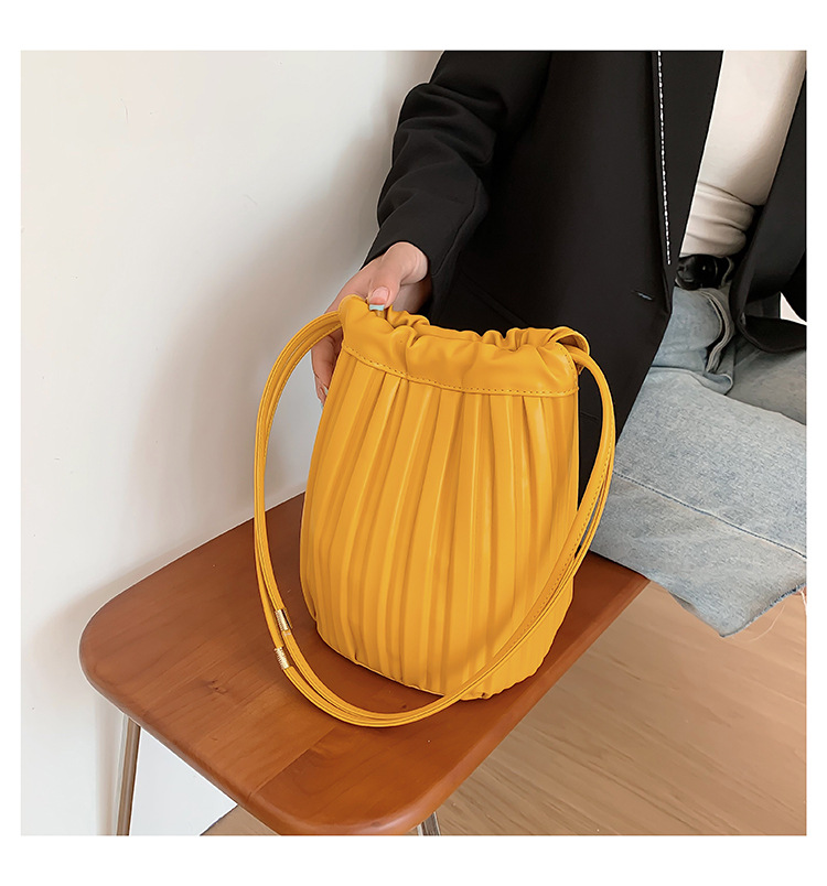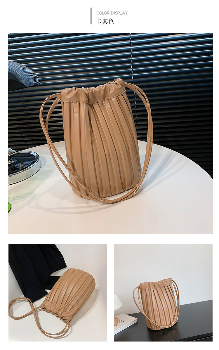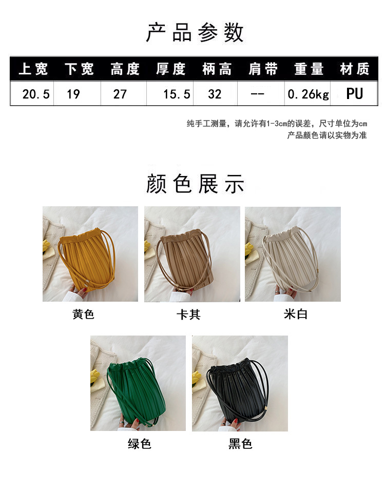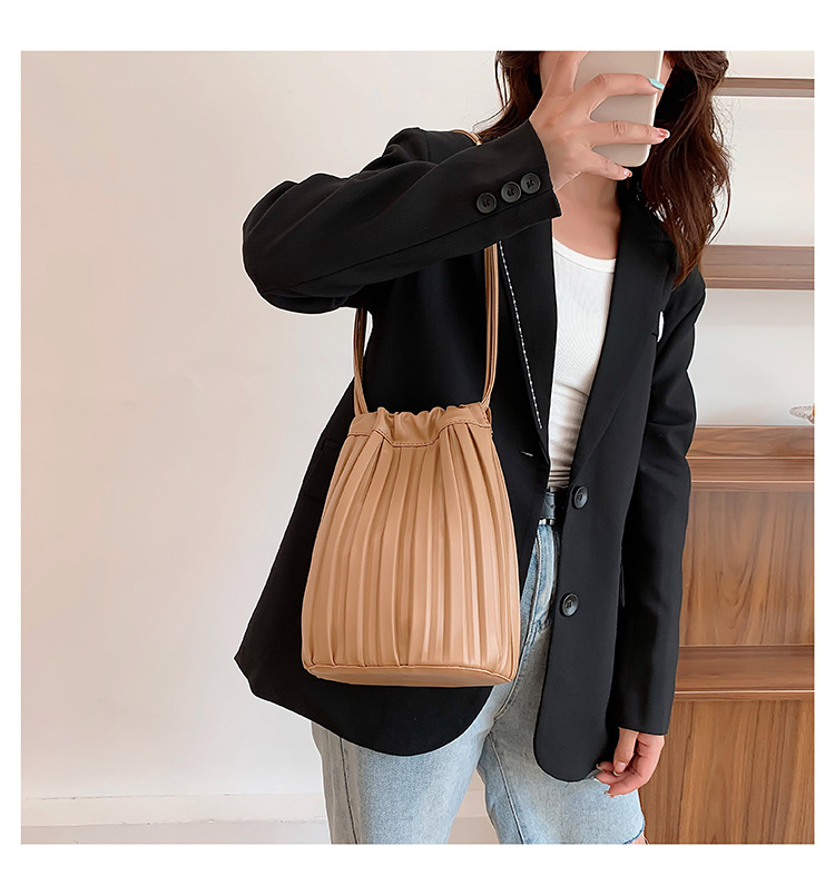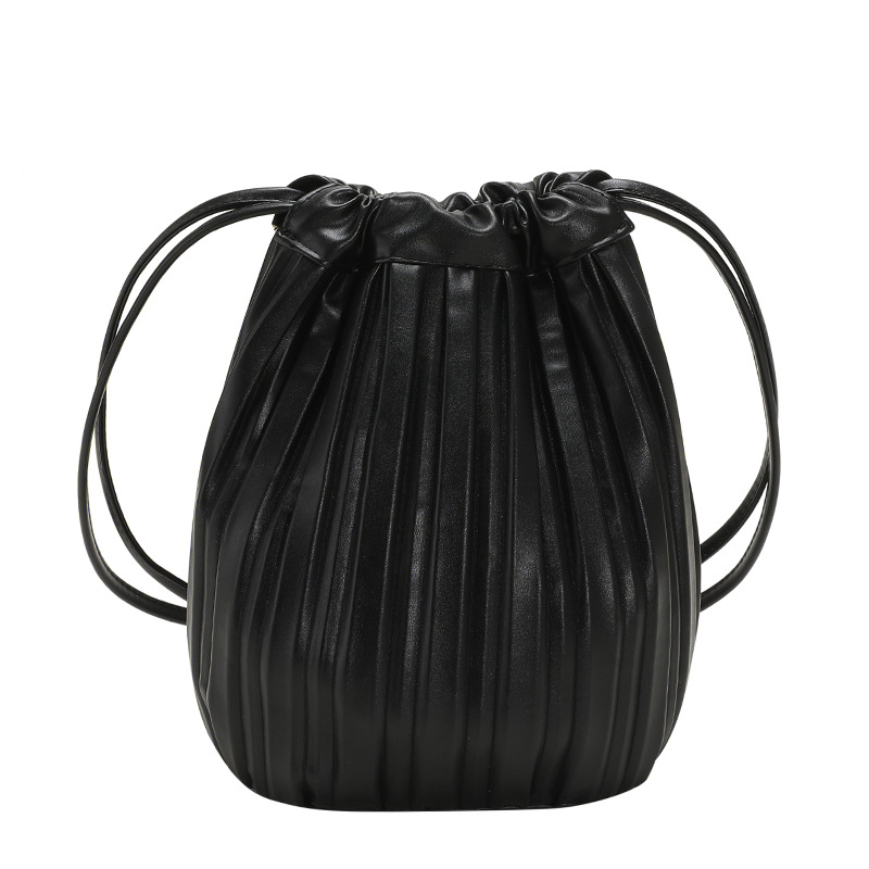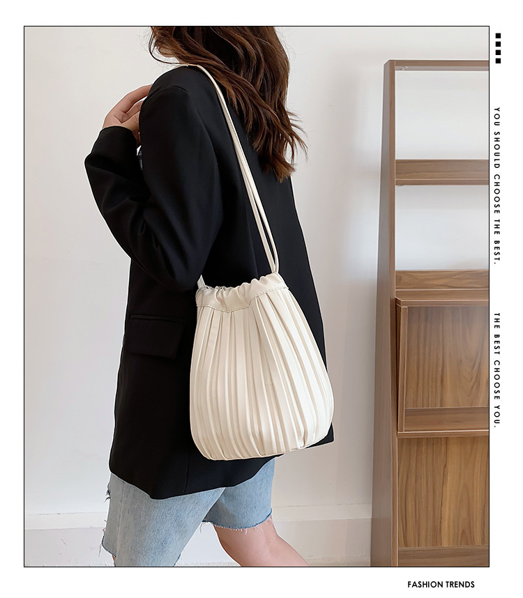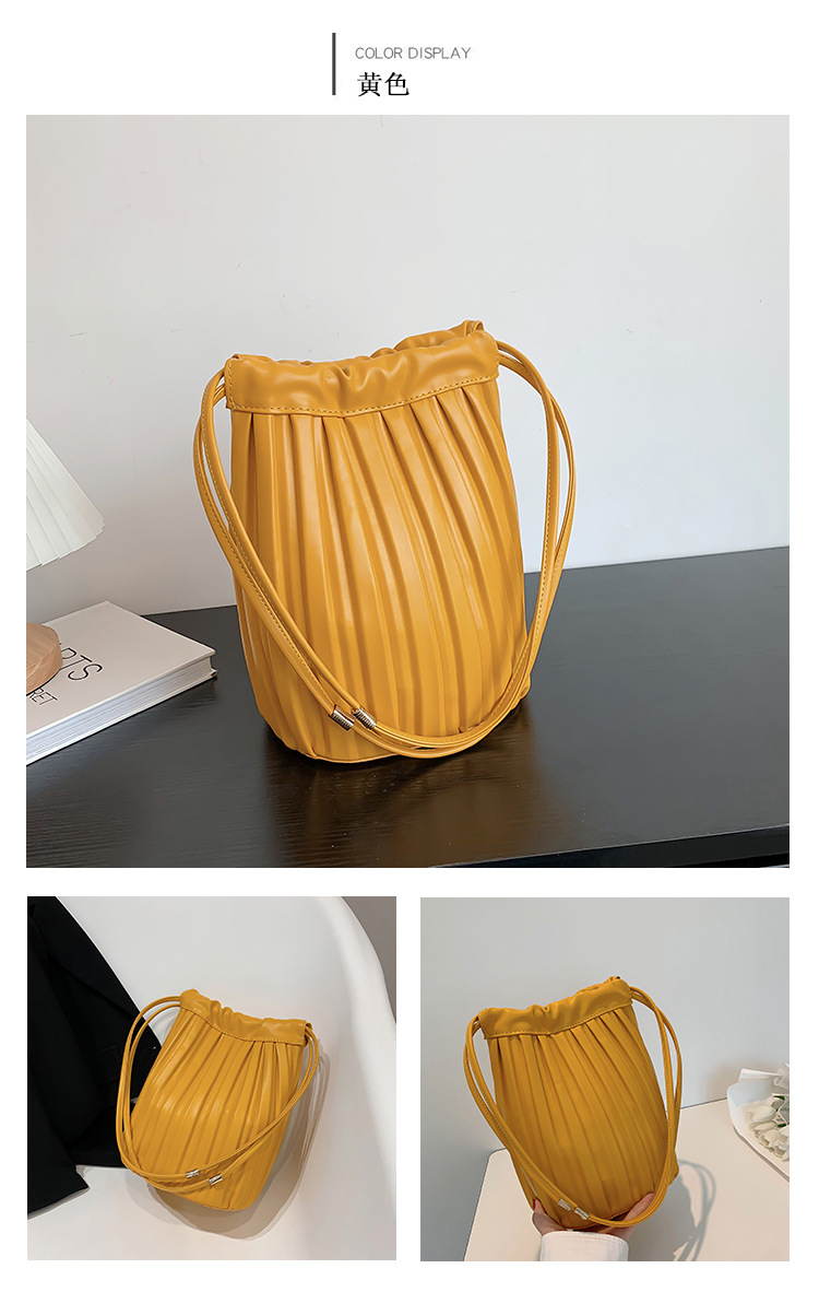 高级感时尚个性设计褶皱包包女夏新款小众洋气单肩百搭水桶包