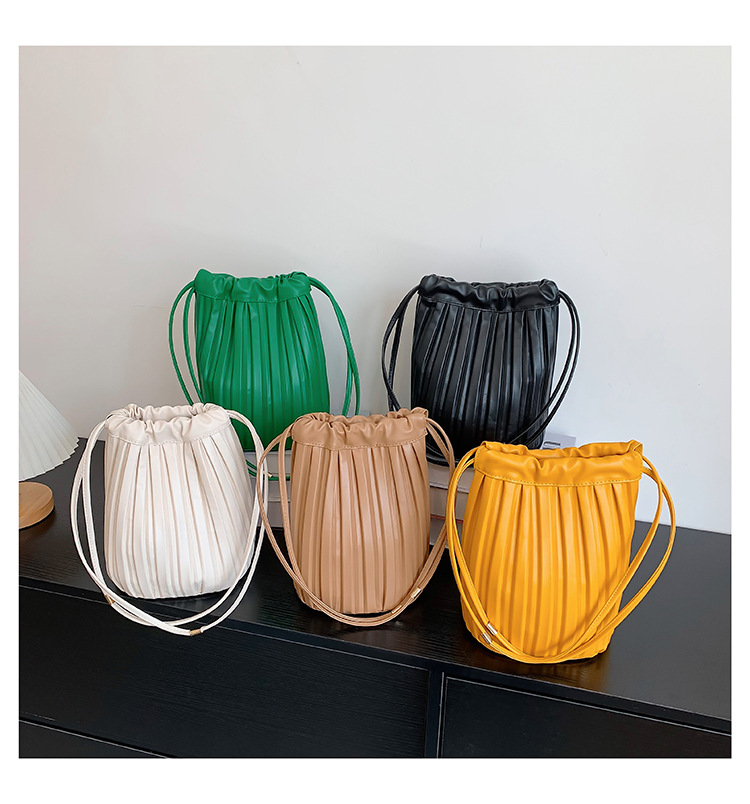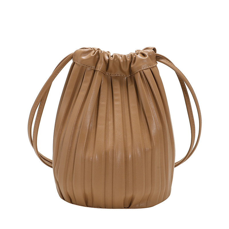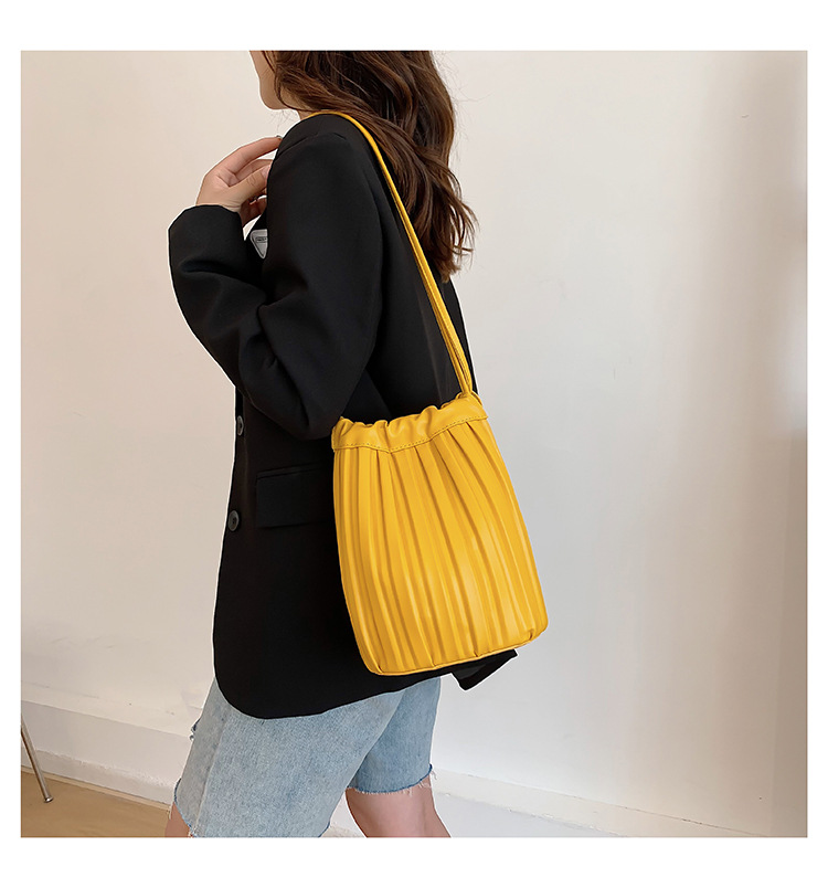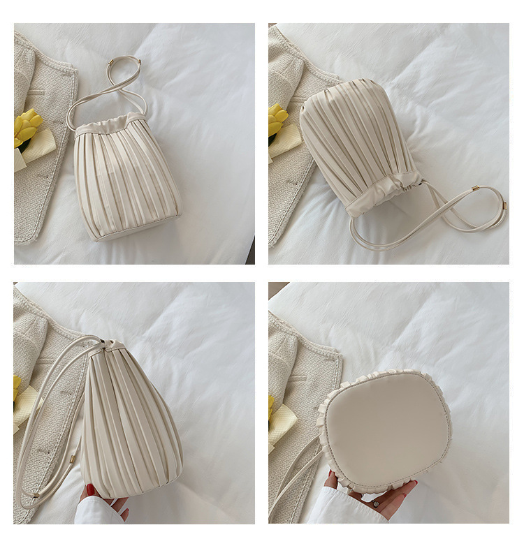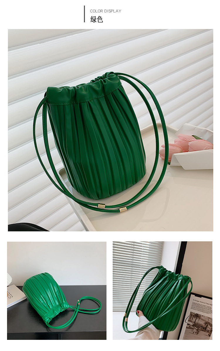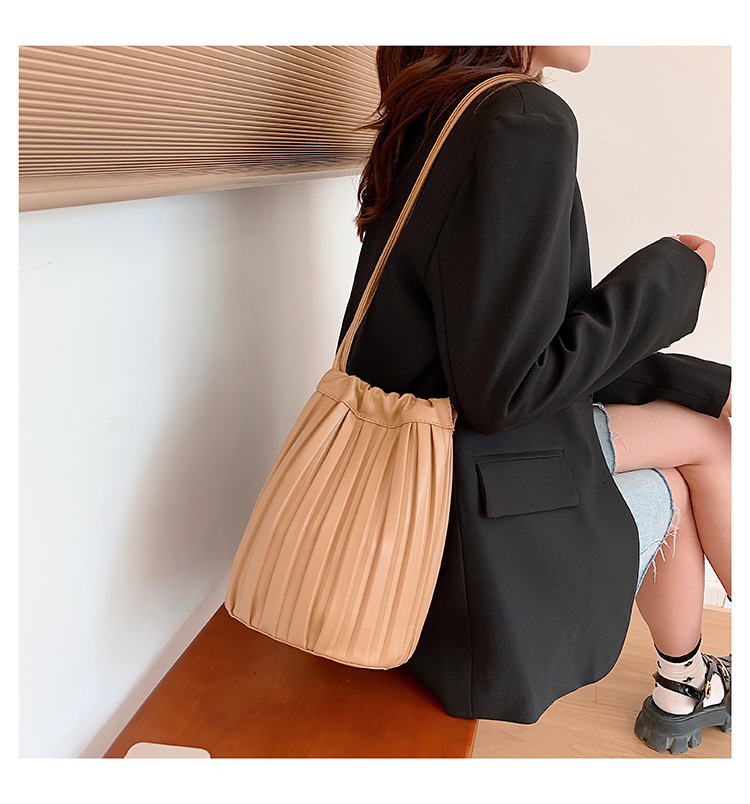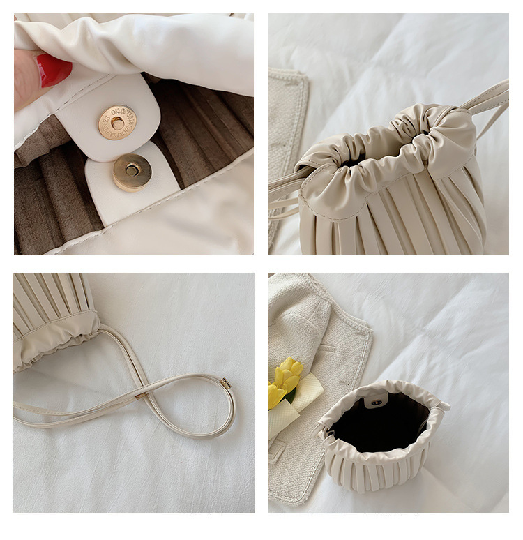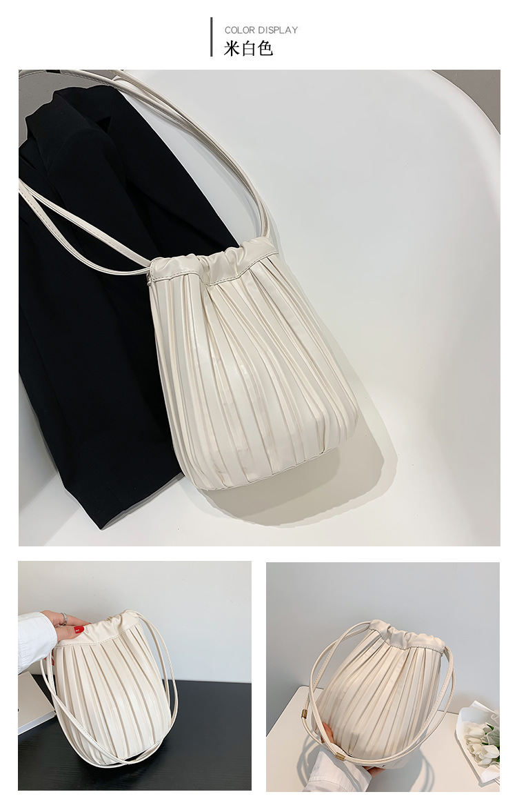 高级感时尚个性设计褶皱包包女夏新款小众洋气单肩百搭水桶包