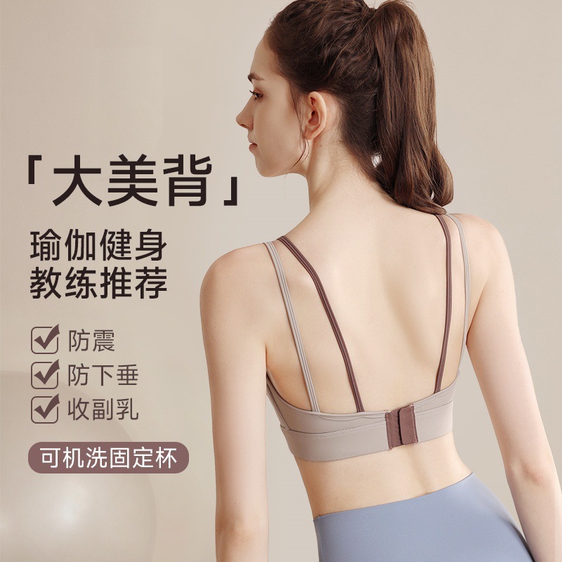 一体式撞色假两件运动内衣美背健身瑜伽文胸u型小吊带后排扣背心