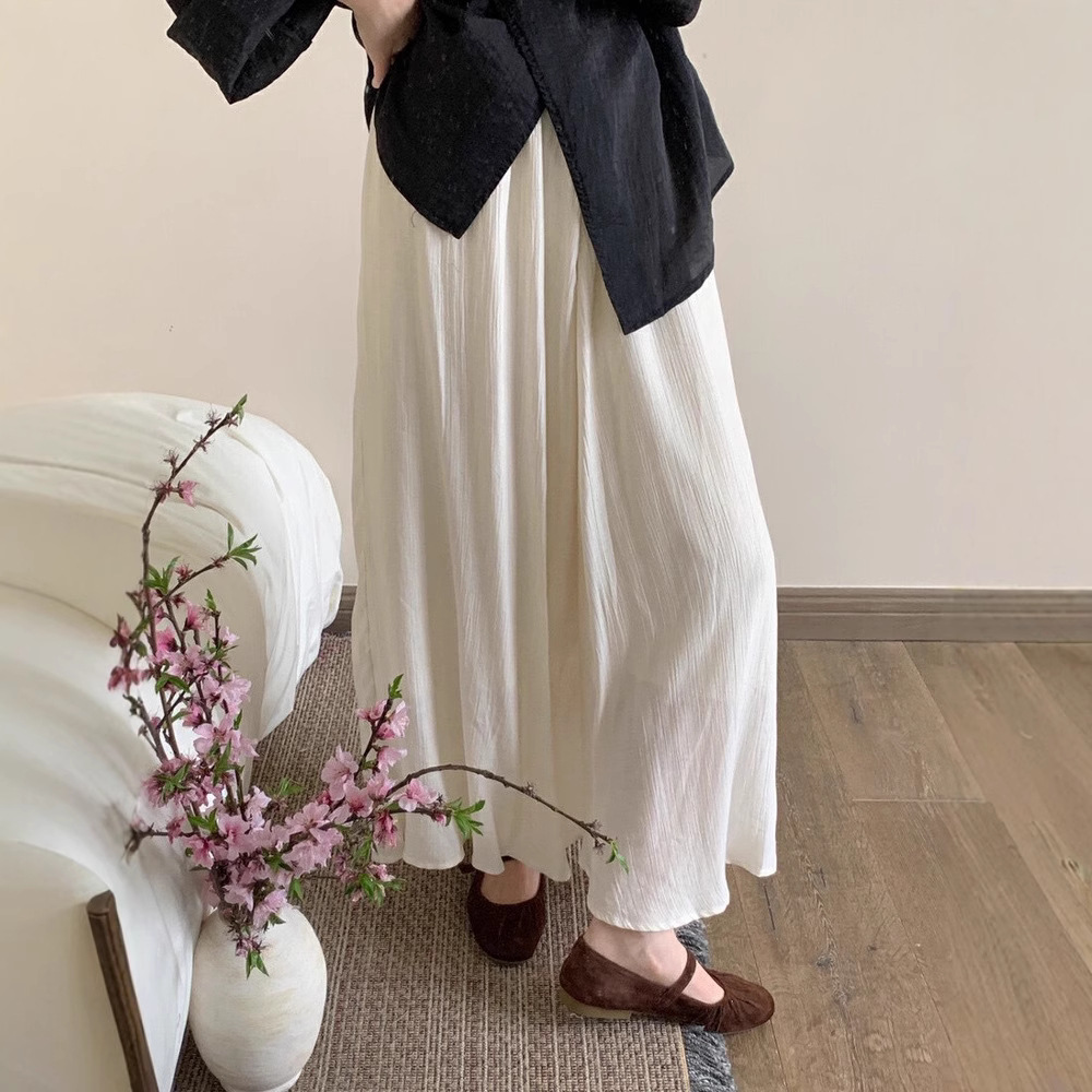 Chao级推荐肌理纹抓褶工艺半身裙新中式显瘦高腰宽松百搭长裙