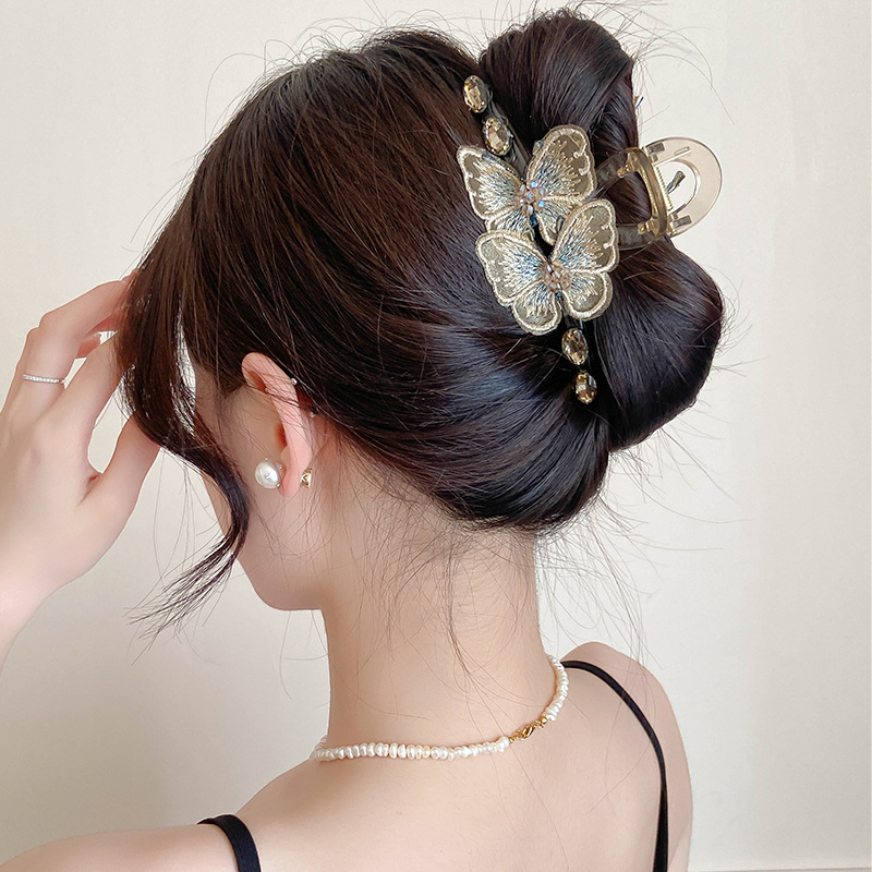刺绣蝴蝶发夹女后脑勺发抓大号抓夹盘发头饰成人优雅百搭夹子头饰