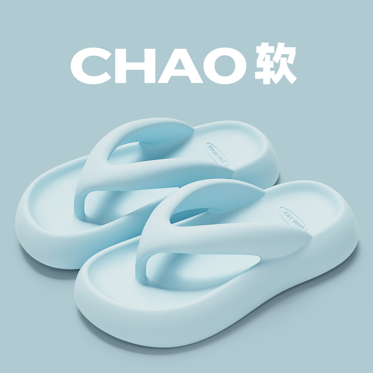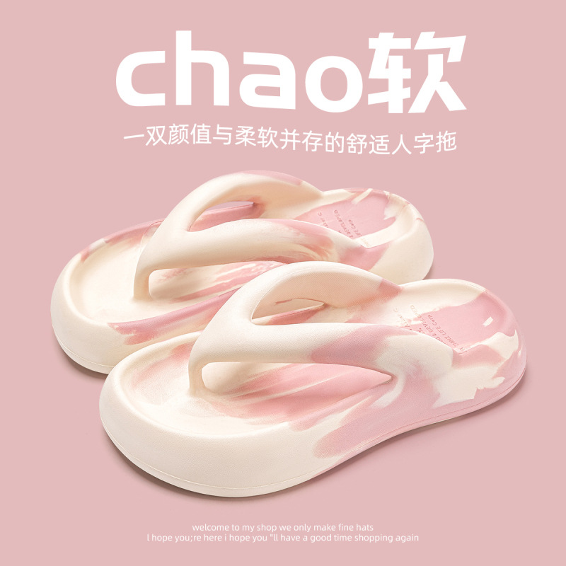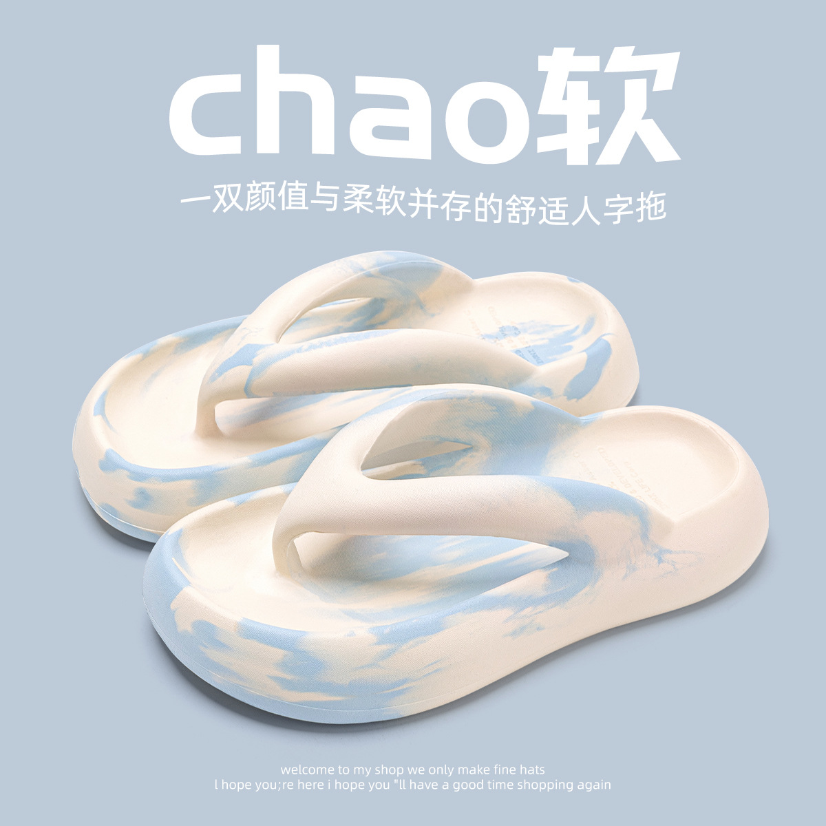 夏季厚底踩屎感人字拖鞋女2025户外沙滩拖鞋海边外穿增高凉鞋女士