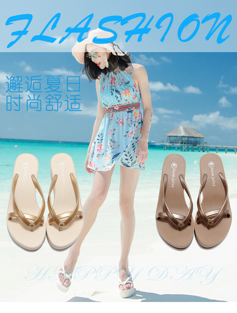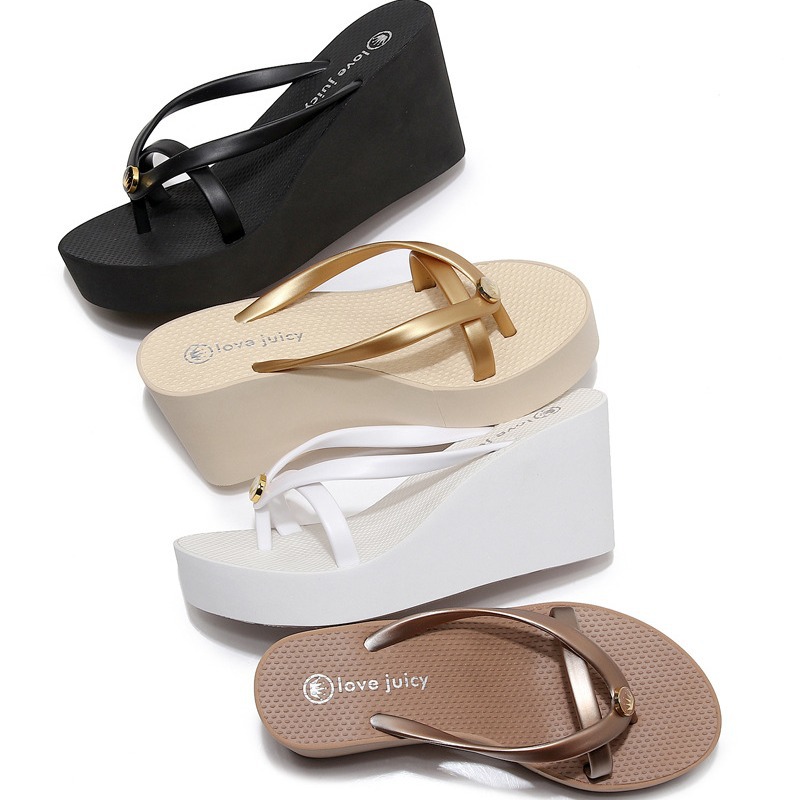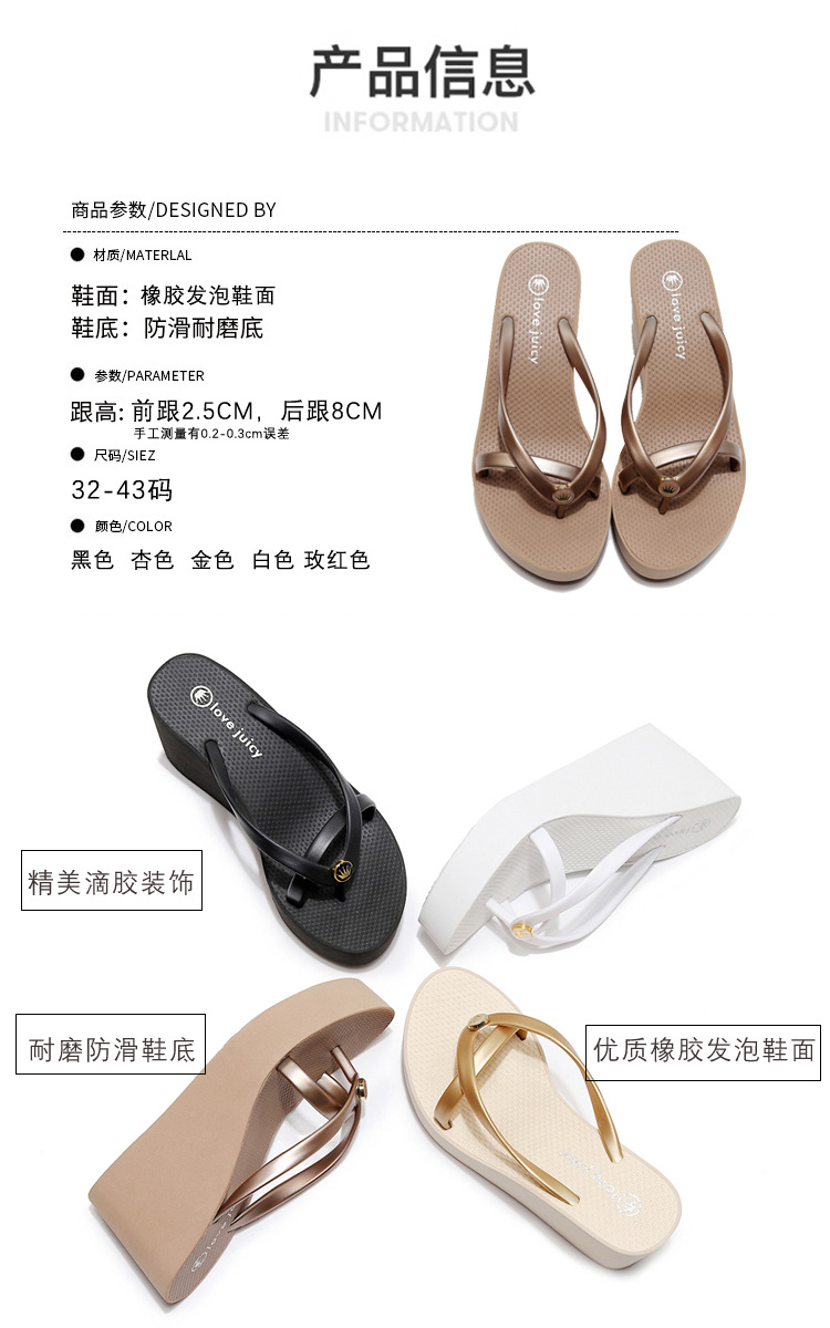 wedge sandals坡跟厚底人字拖女橡胶防滑8cm凉拖鞋