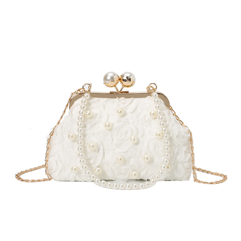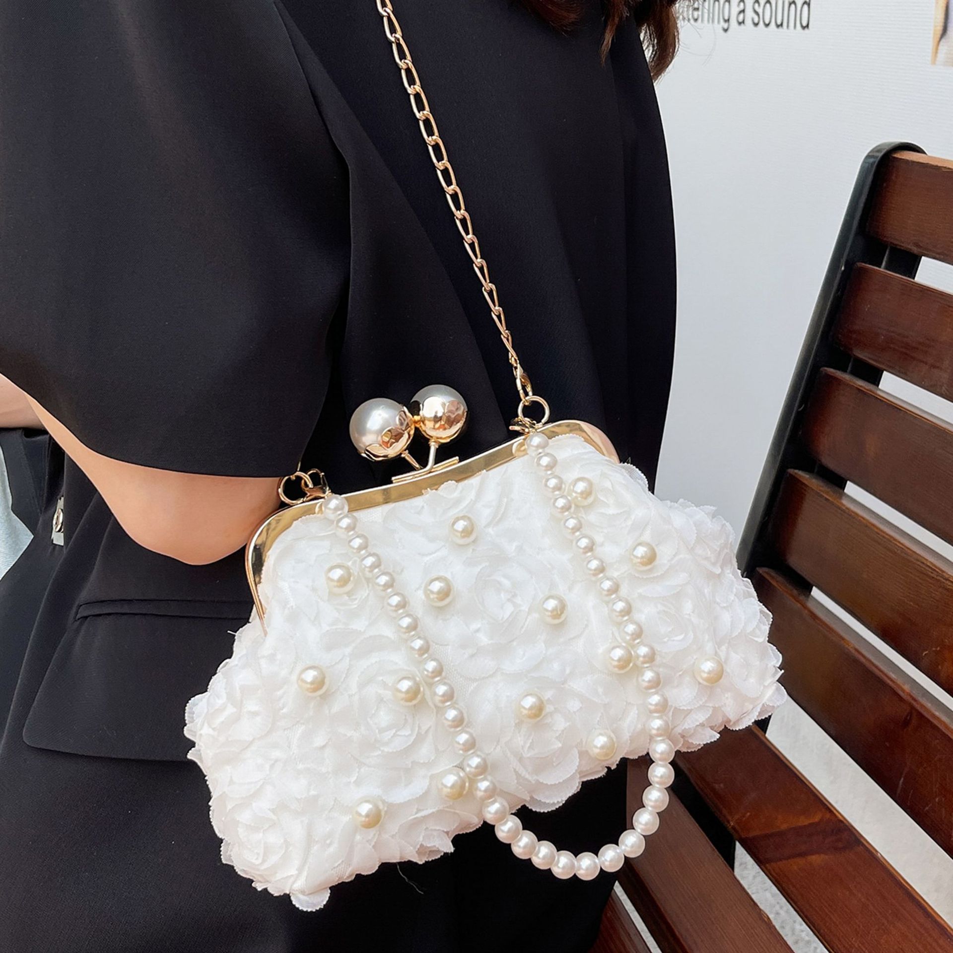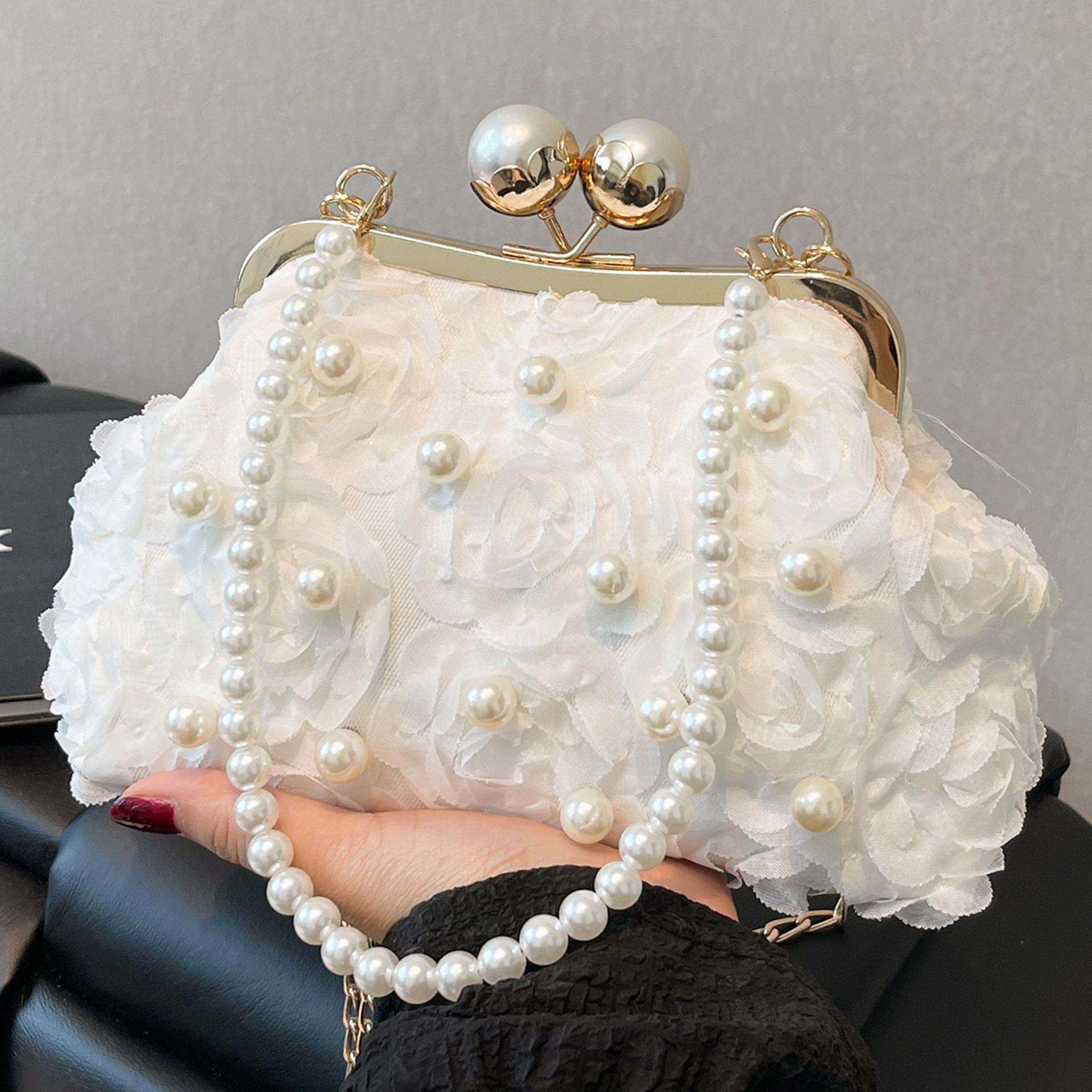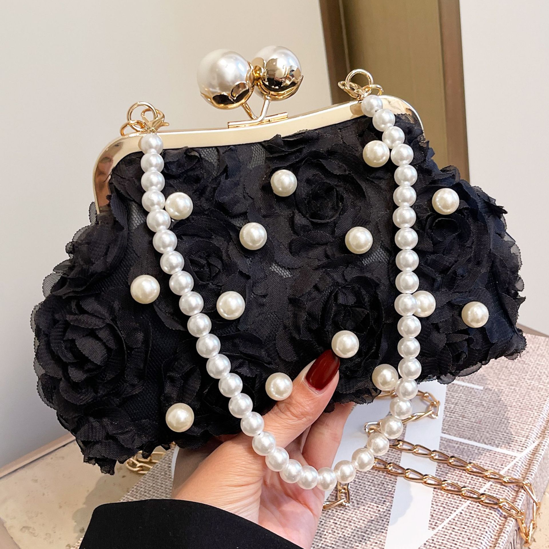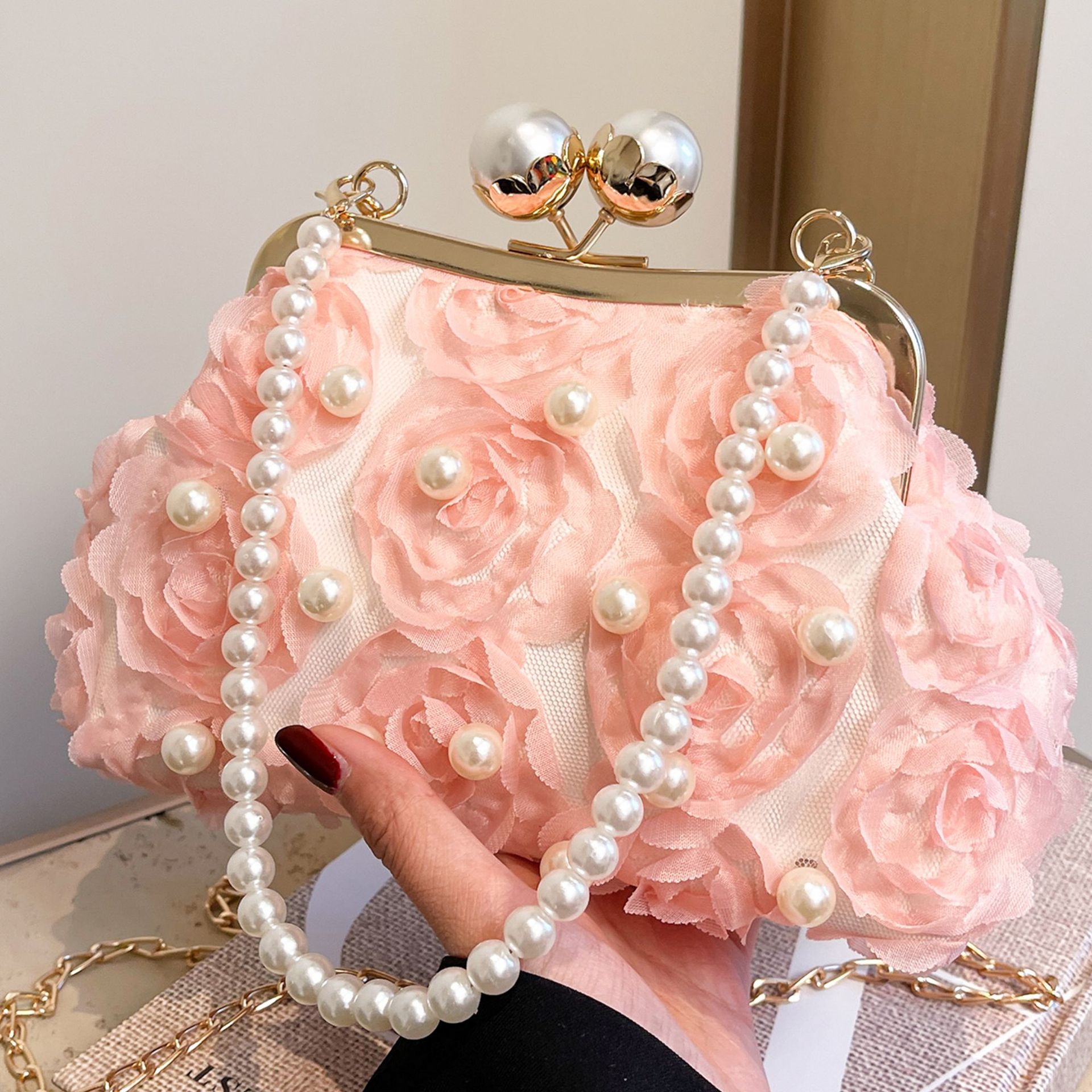 欧美2025新款玫瑰花珍珠时尚链条包宴会手提包高级质感百搭斜跨包