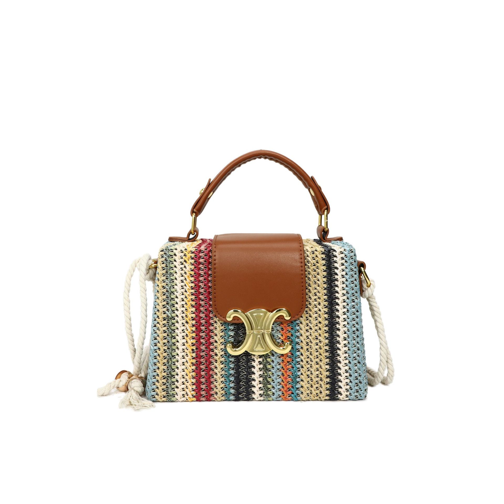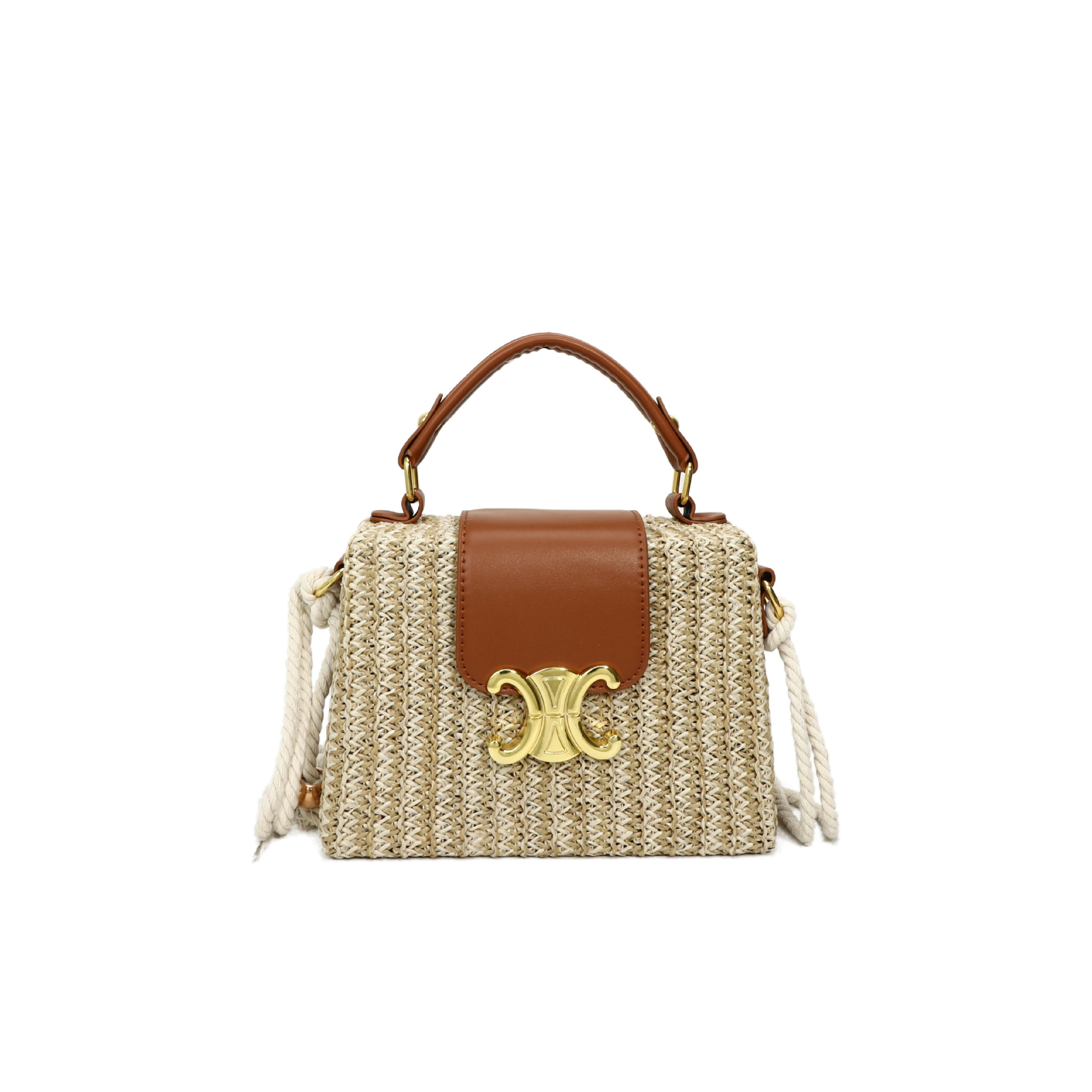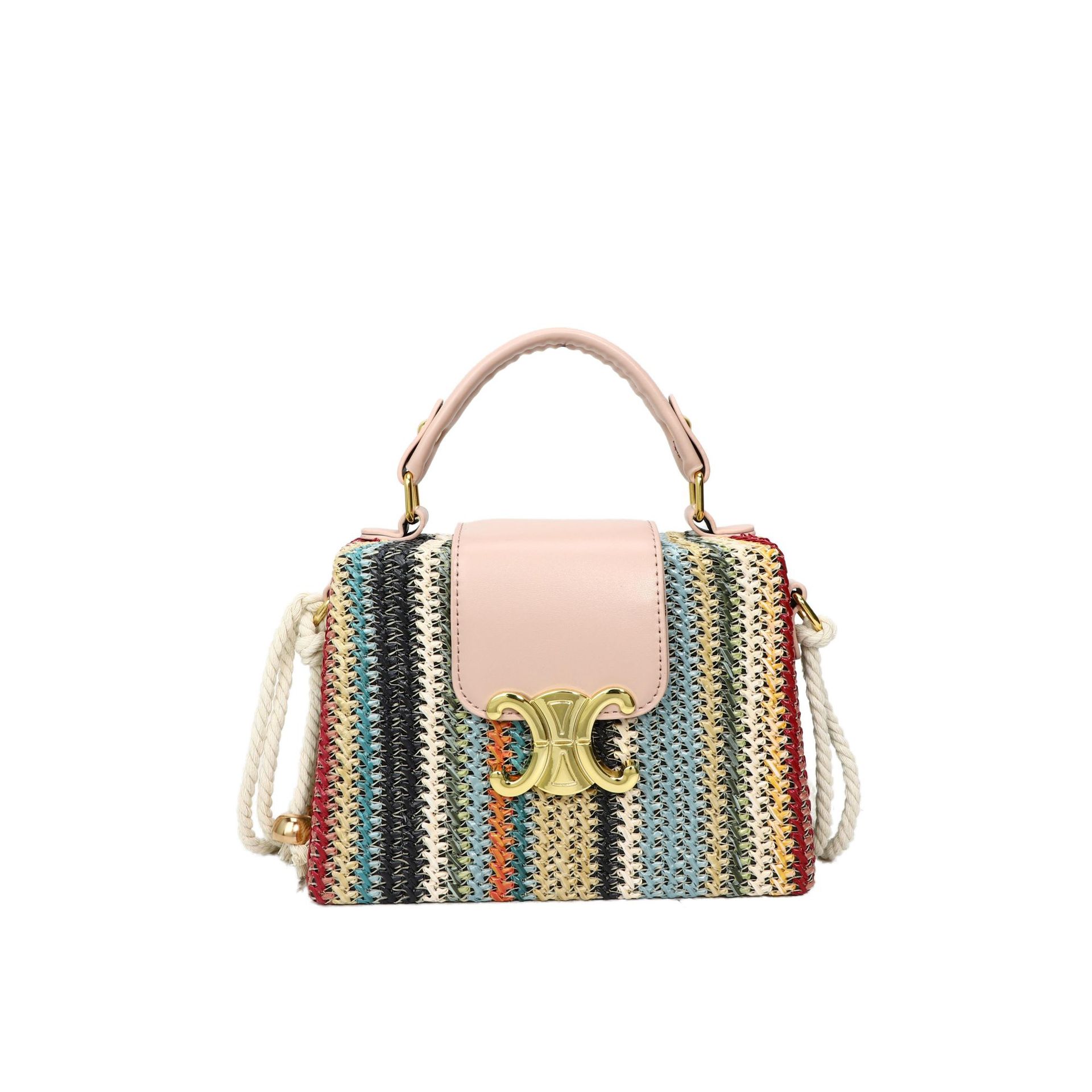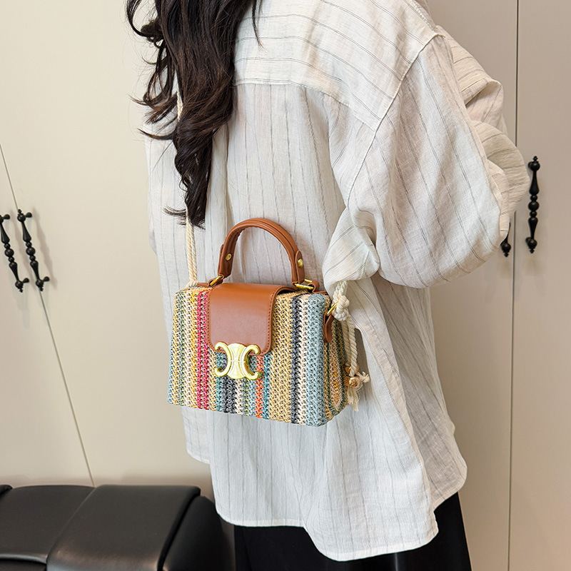 编织包包女新款女包手提单肩硬壳草编包精致高颜值高级小方包