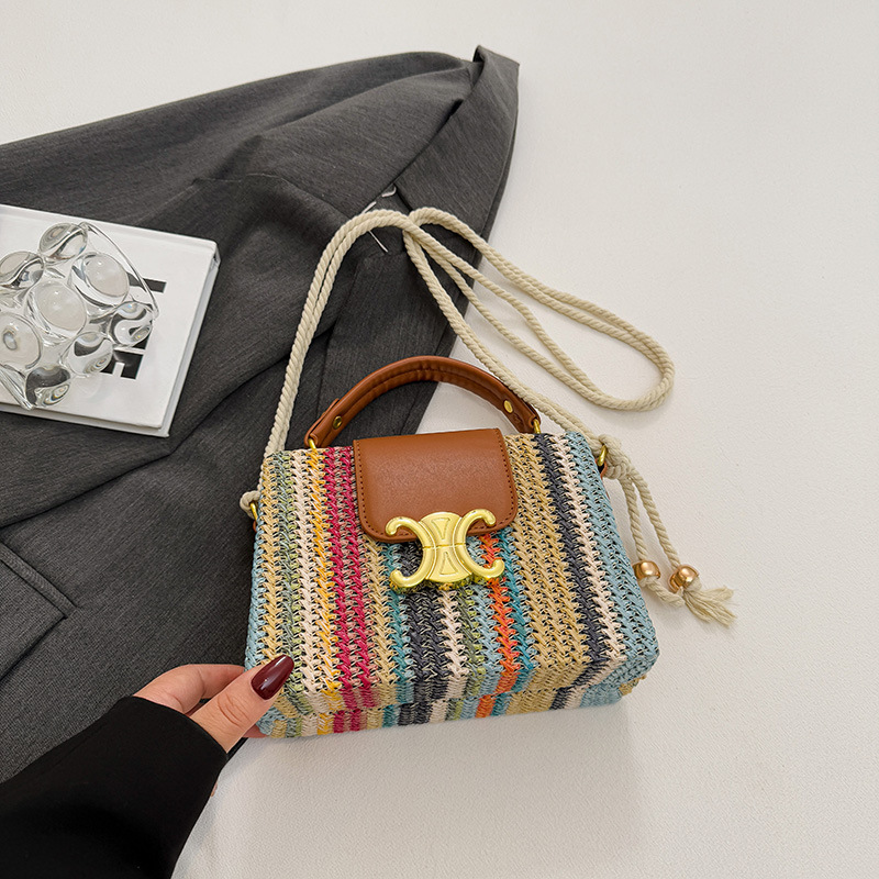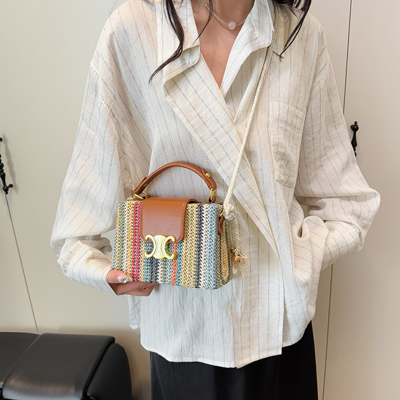 复古编织初夏小方包2025新款马卡龙色系质感斜挎包链条手提单肩包