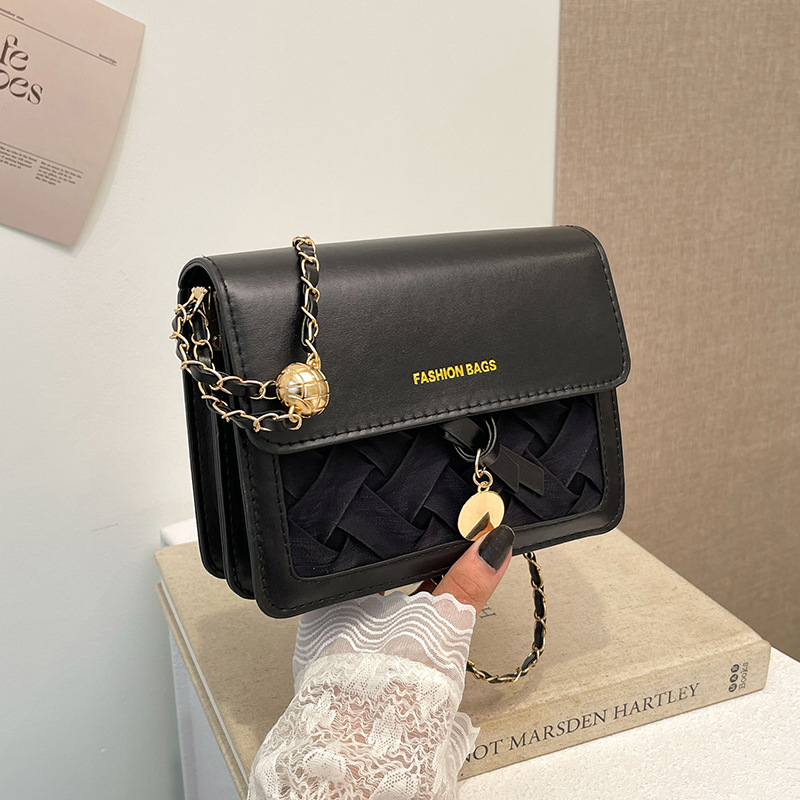 撞色链条小包包女新款潮单肩斜挎包洋气百搭小清新编织小方包