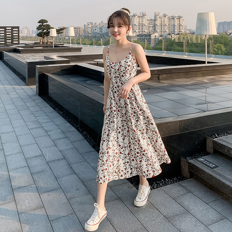 碎花吊带连衣裙女收腰显瘦夏天小清新新款长裙