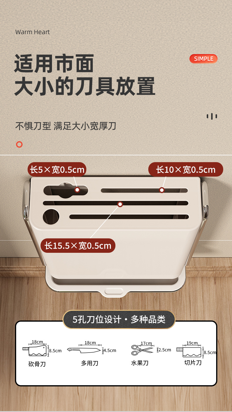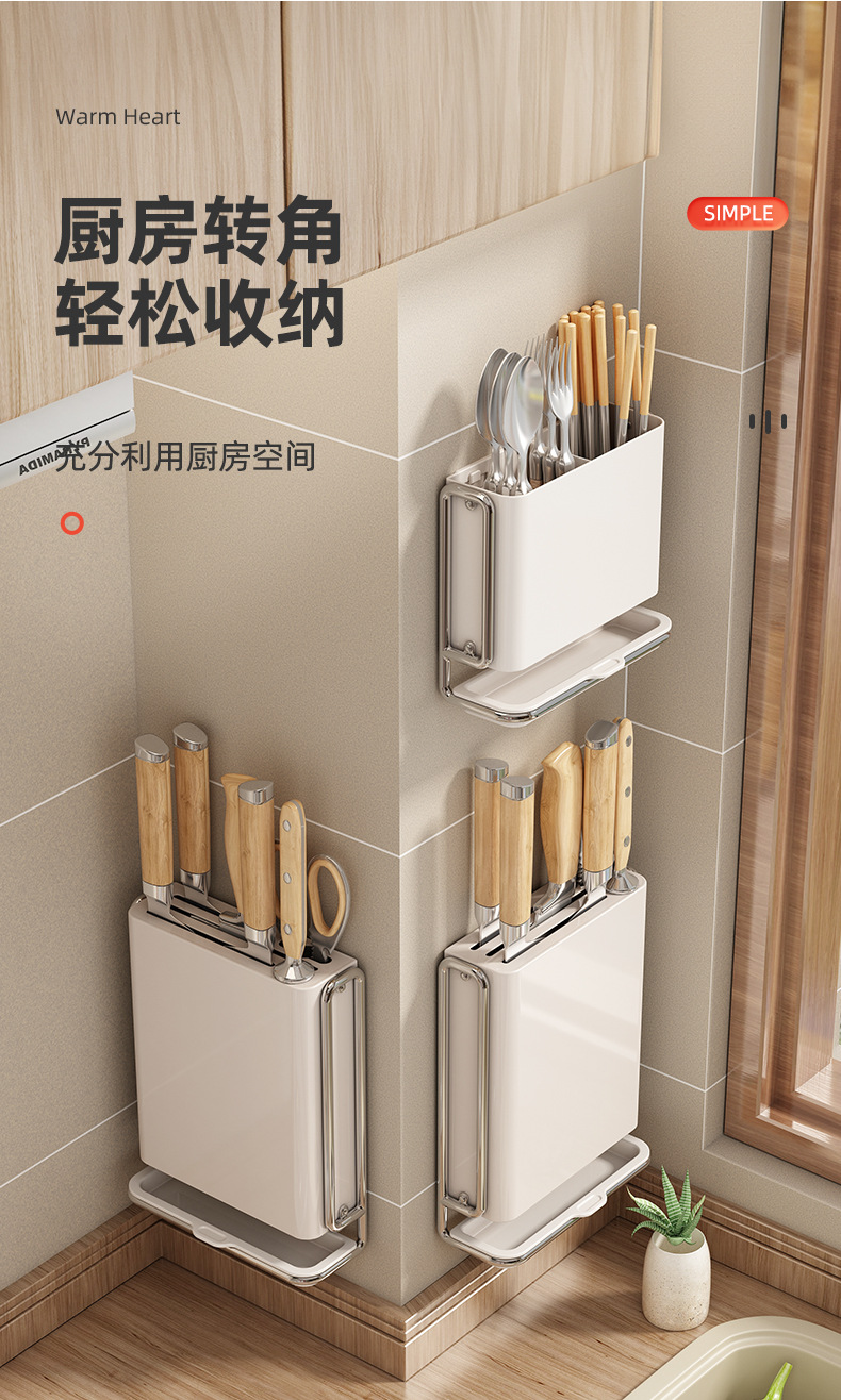 刀架置物架厨房多功能菜刀架免打孔壁挂式筷子筒刀架一体收纳