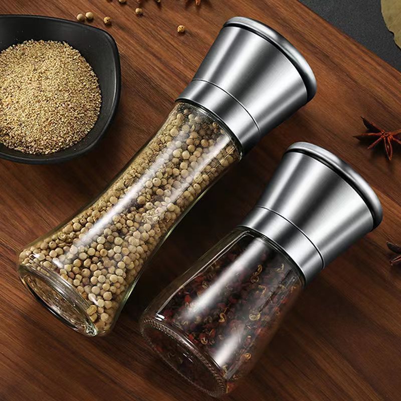 不锈钢研磨瓶黑胡椒研磨器陶瓷芯西餐烧烤调料手动旋转式玻璃研磨