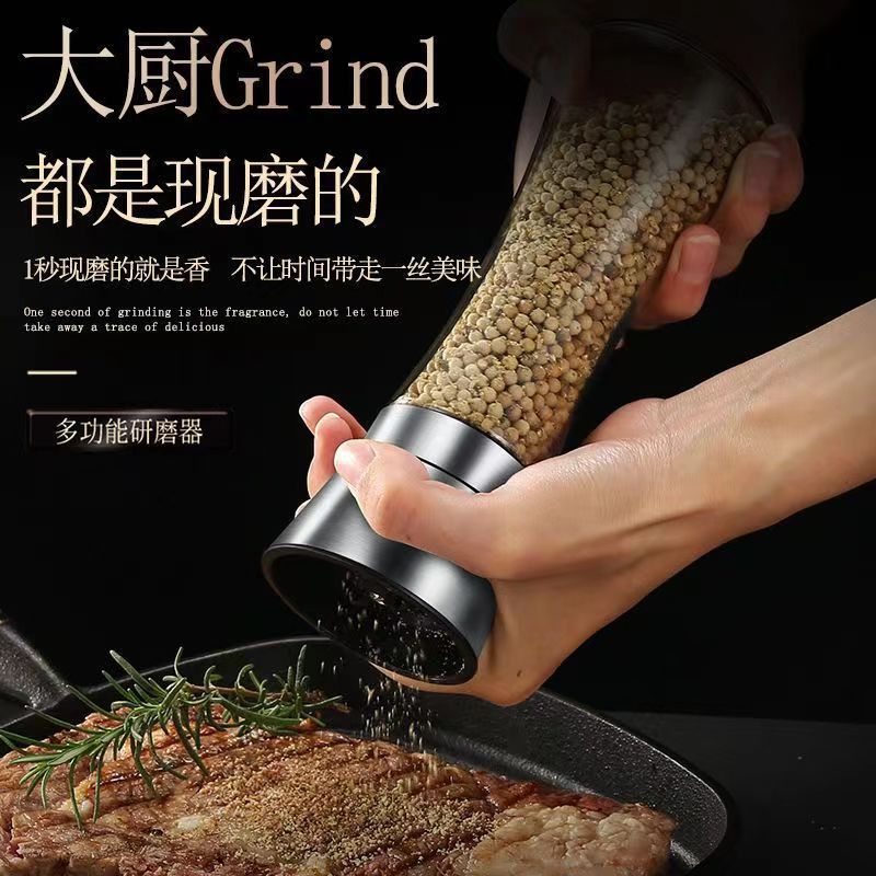 手动研磨器玻璃瓶黑胡椒海盐不锈钢研磨瓶家用调料瓶厨房用具