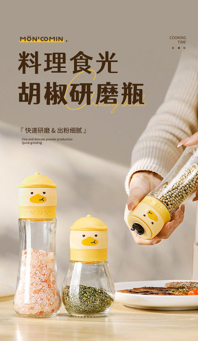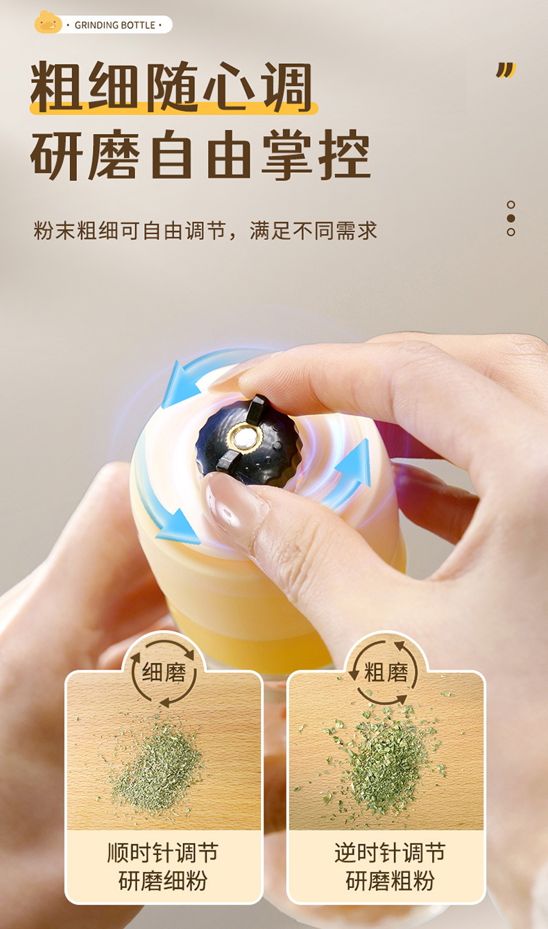 研磨器多功能旋转撒粉研磨瓶厨房用品烧烤胡椒调料瓶玻璃