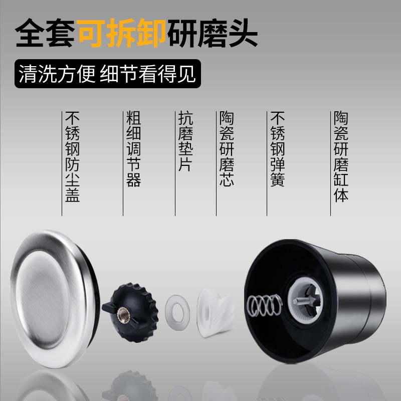 家用胡椒粉研磨器玻璃手动研磨器花椒粉调料瓶厨房不锈钢调味瓶