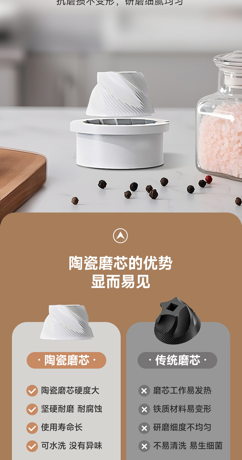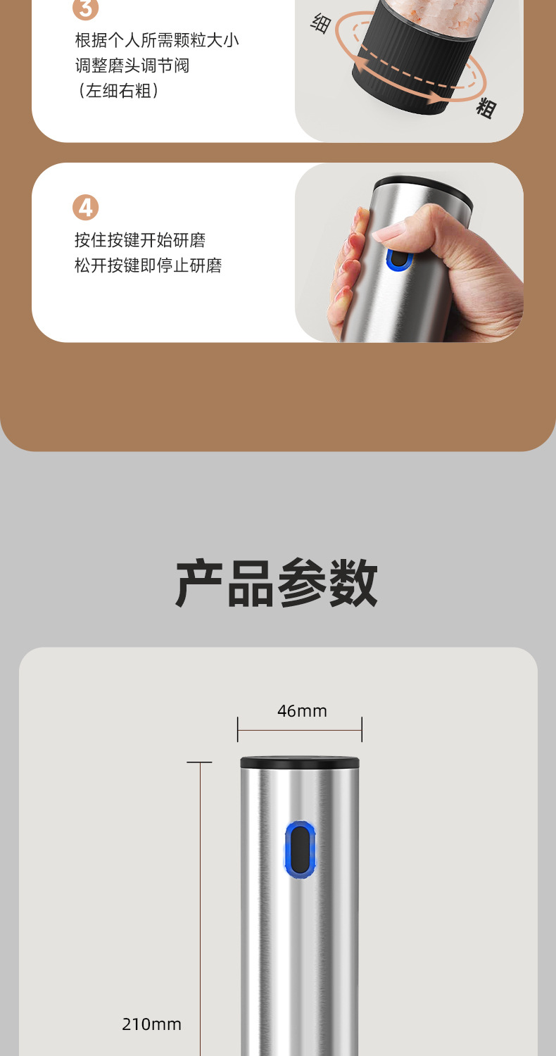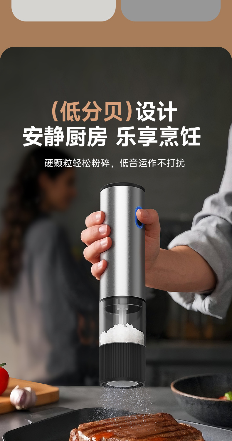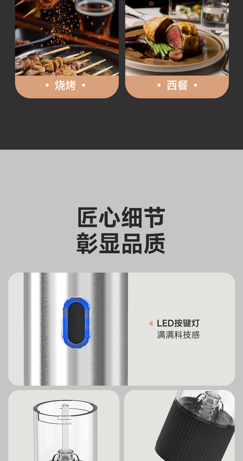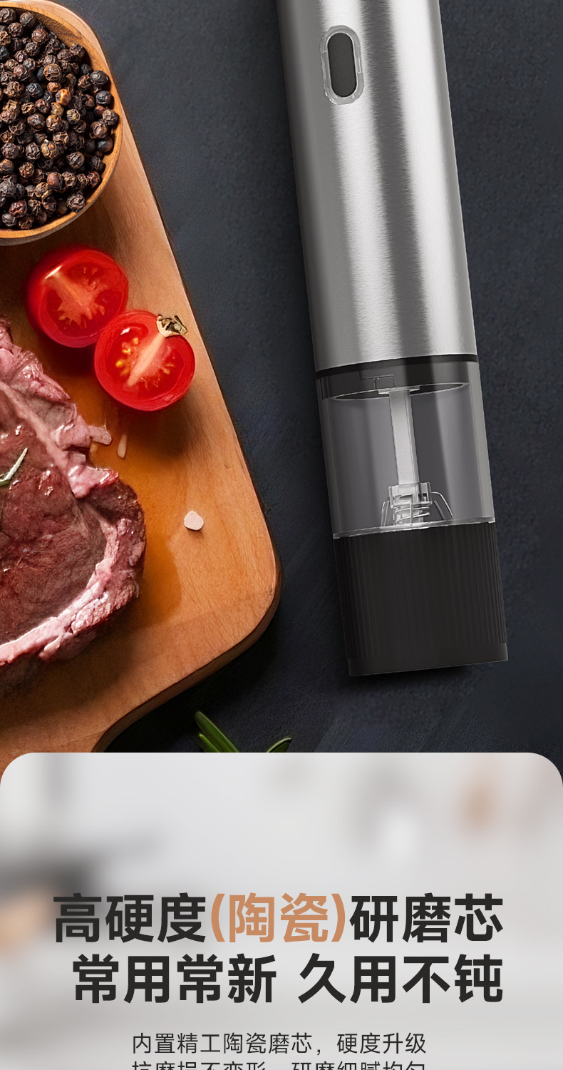 电动胡椒研磨器黑胡椒粒花椒粗盐海盐粉自动西餐牛扒调料研磨瓶器