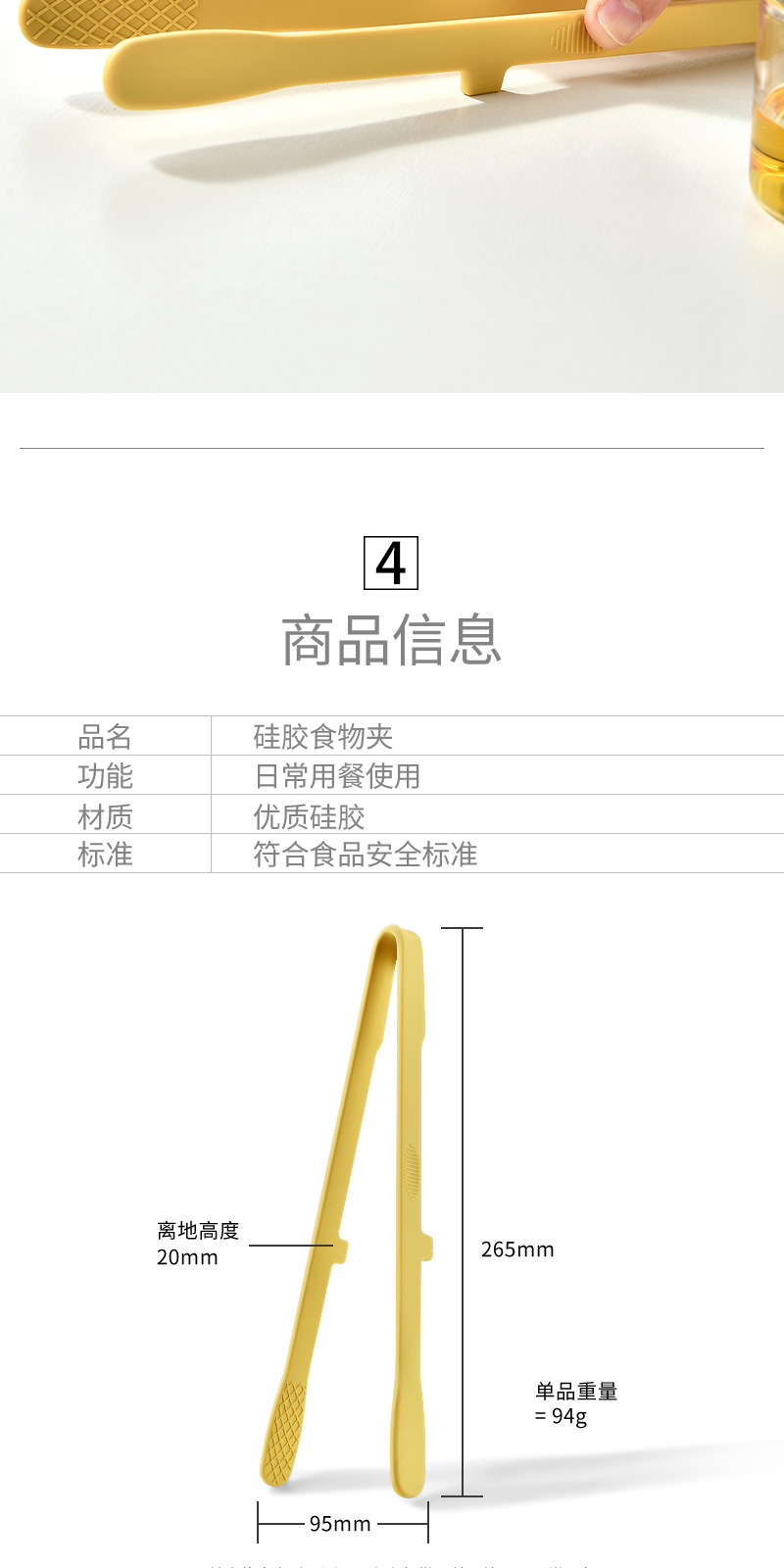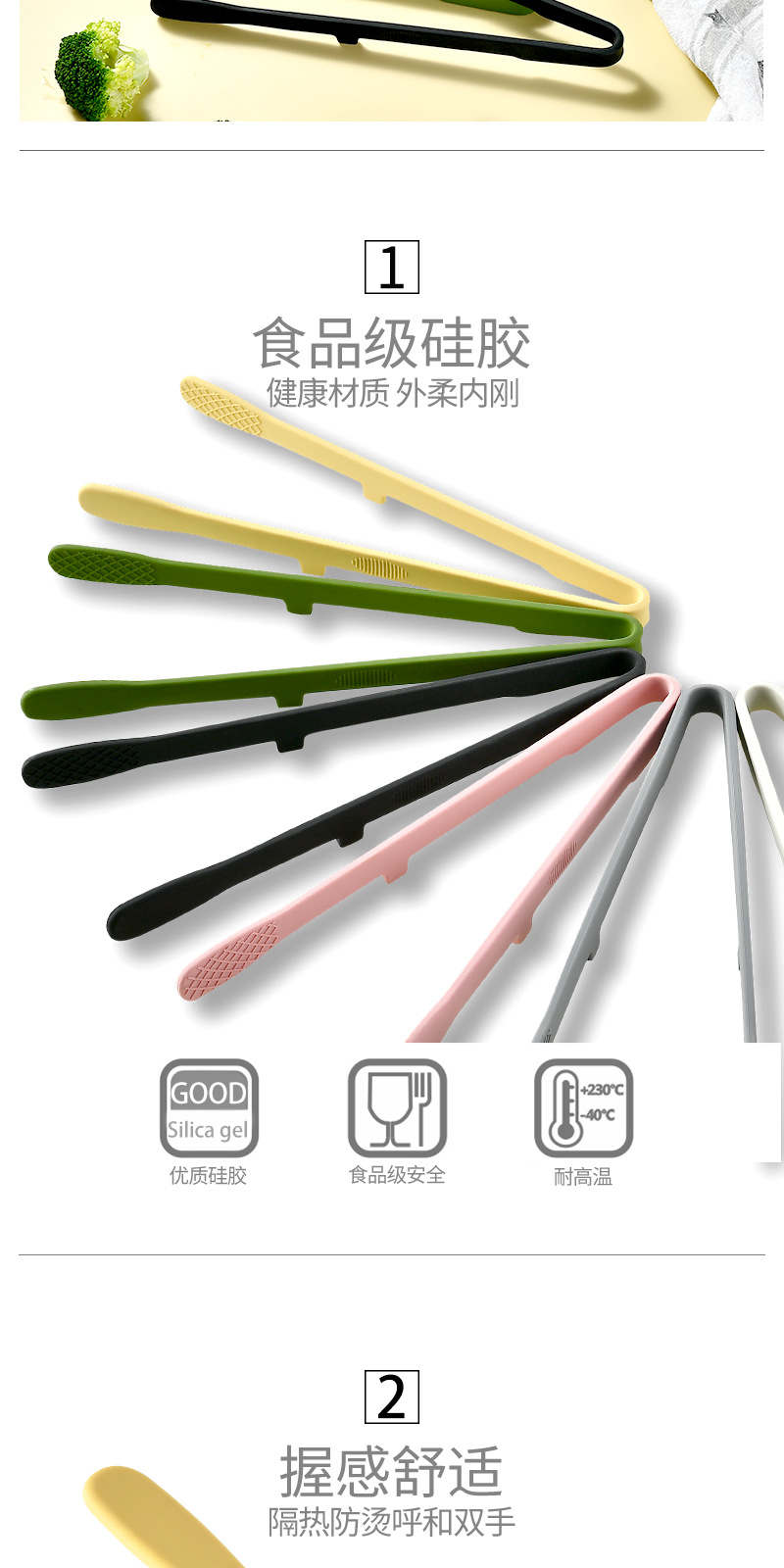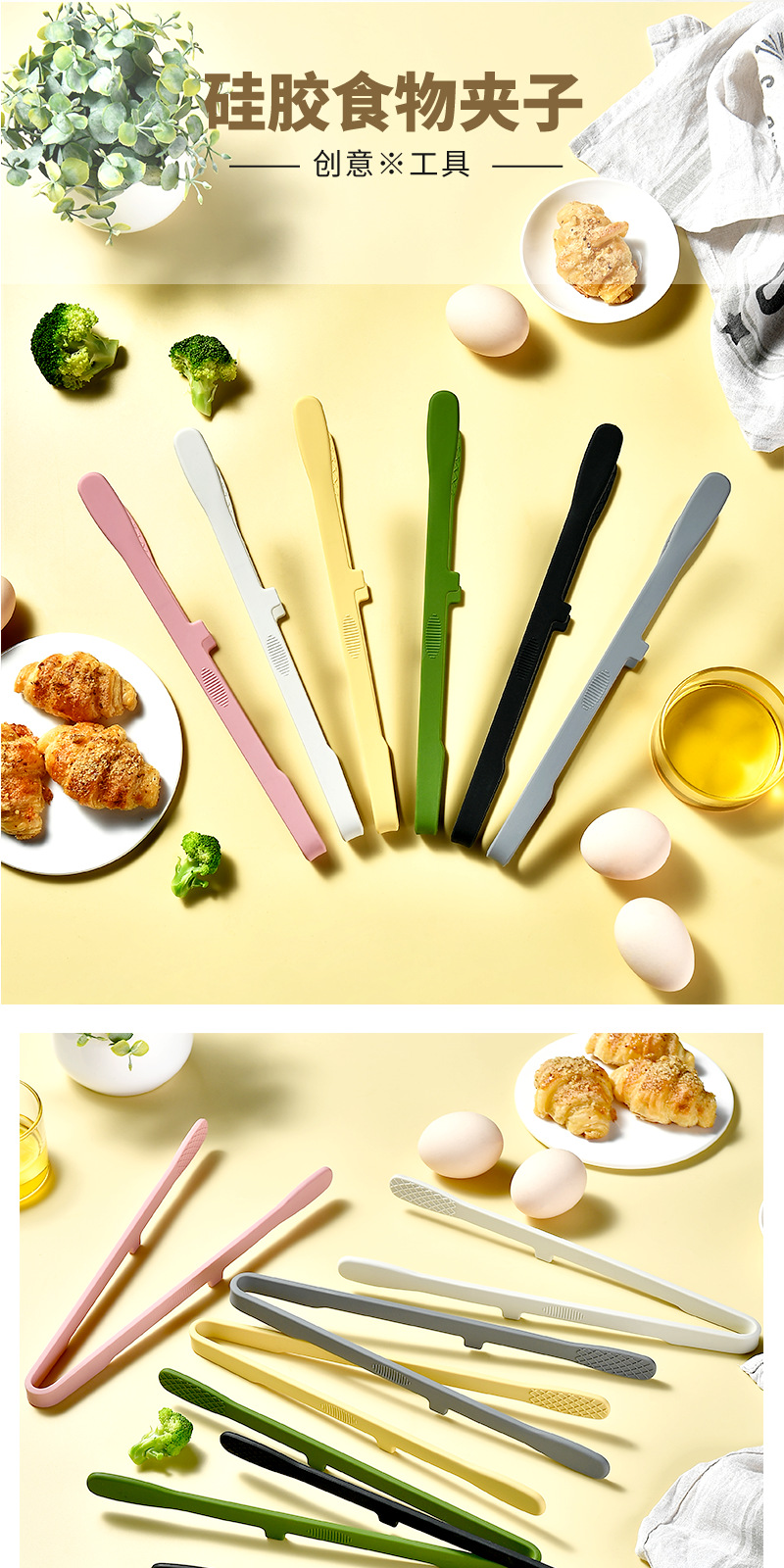 一体式硅胶食物夹防烫硅胶牛排烧烤夹家用厨房蛋糕面包食品夹