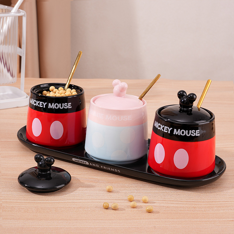 米奇陶瓷调味罐调料瓶盐罐厨房家用高端组合套装带盖带勺子