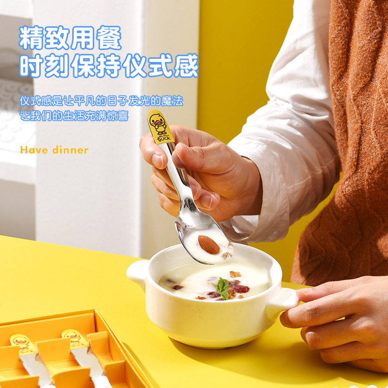小黄鸭勺子套装Duck高颜值家用ins风小勺子创意儿童吃饭可爱调羹