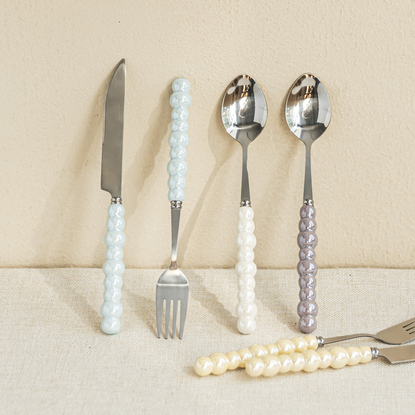 刀叉勺套装奶油风勺子餐具陶瓷手柄家用不锈钢叉子西餐甜品勺