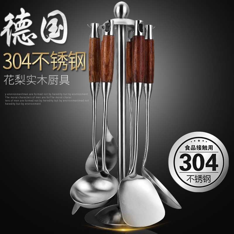 304不锈钢加厚防烫手柄滤火锅花梨木套装锅铲煎铲厨具火锅漏勺