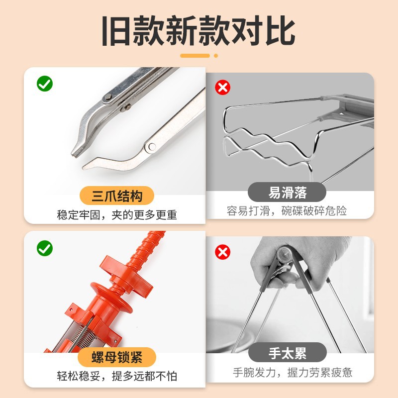 【304不锈钢】三脚防烫碗碟夹取碗夹防烫夹子厨房神器盘夹取蒸菜