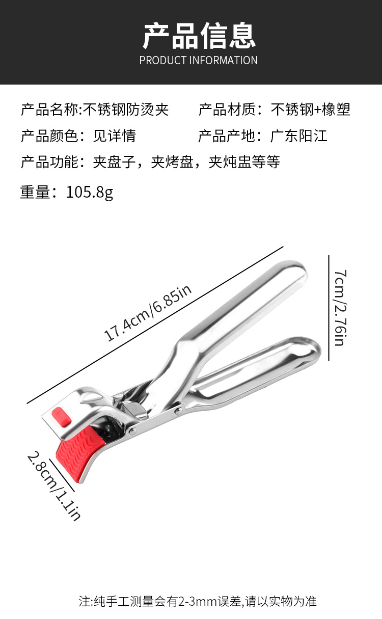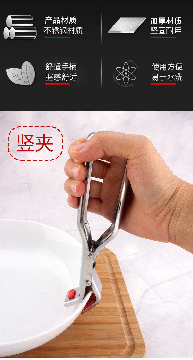 防烫高档不锈钢取碗夹硅胶防滑厨房锅碗碟夹微波炉餐用托盘防烫夹