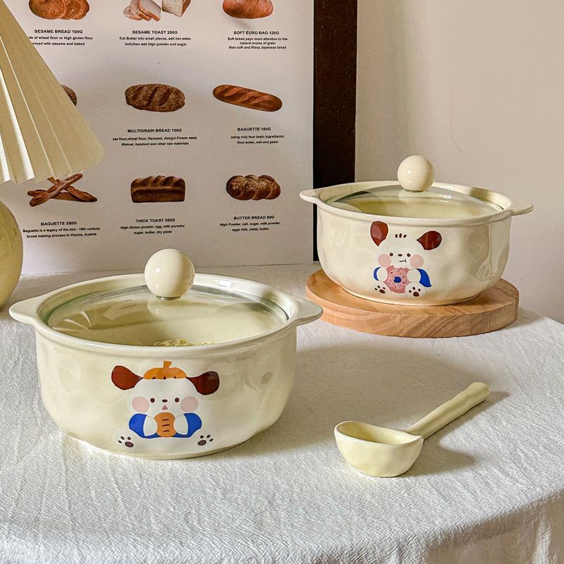 可爱帕恰狗陶瓷泡面碗双耳汤碗带盖学生方便面碗宿舍螺蛳粉碗