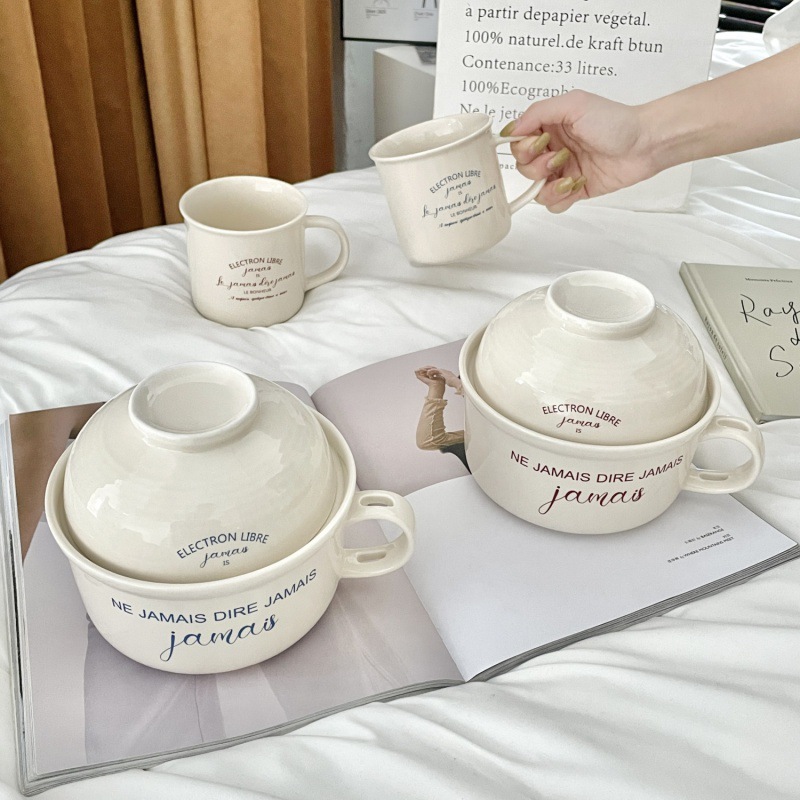 泡面碗带盖陶瓷简约带手柄饭碗饭盒碗筷