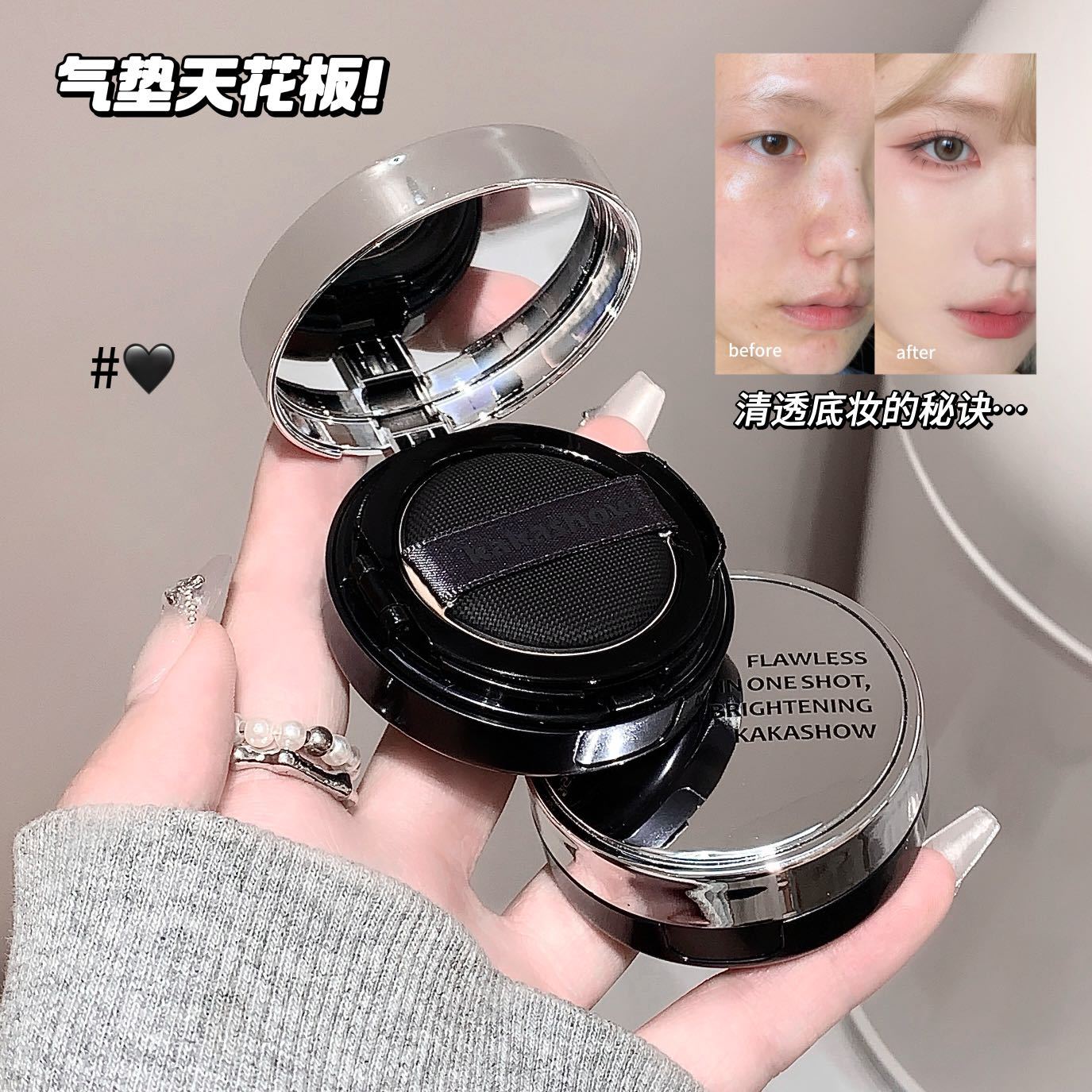 薄透裸感气垫霜遮瑕防水不易脱妆BB霜学生素颜平价粉底液