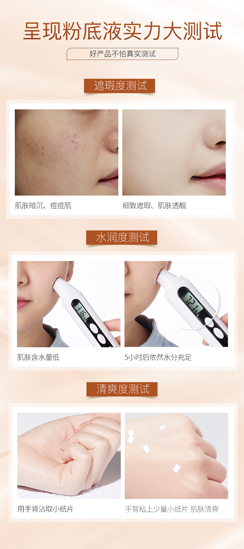 亮采遮瑕粉底液养肤持妆奶油肌小方瓶防汗防水保湿不脱妆