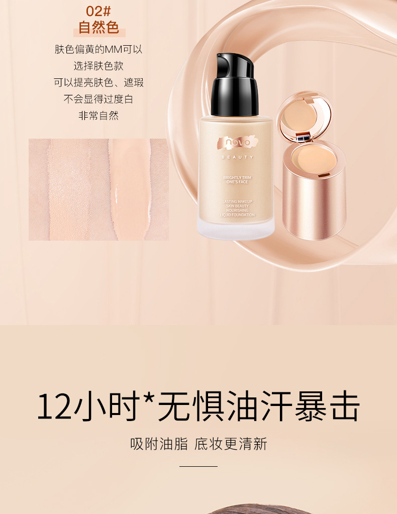 养肤粉底液遮瑕持久不脱妆轻薄保湿控油防水汗水粉底膏BB霜