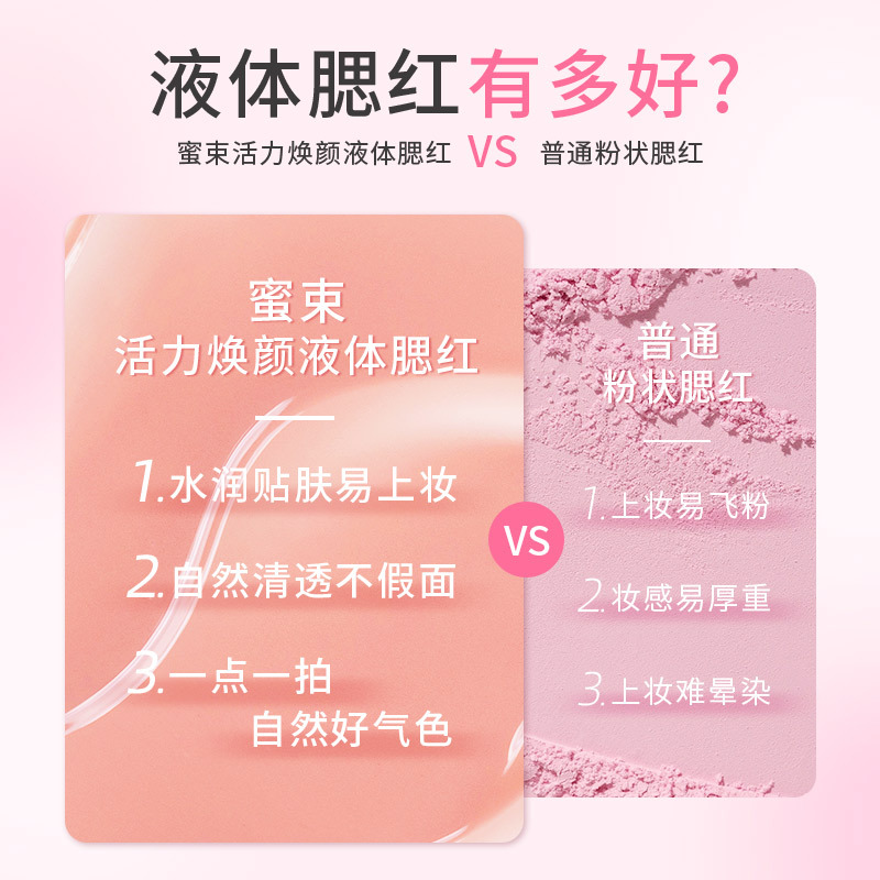 蜜束活力焕颜液体腮红单色膨胀色收缩胭脂粉清透自然提亮柔雾显白