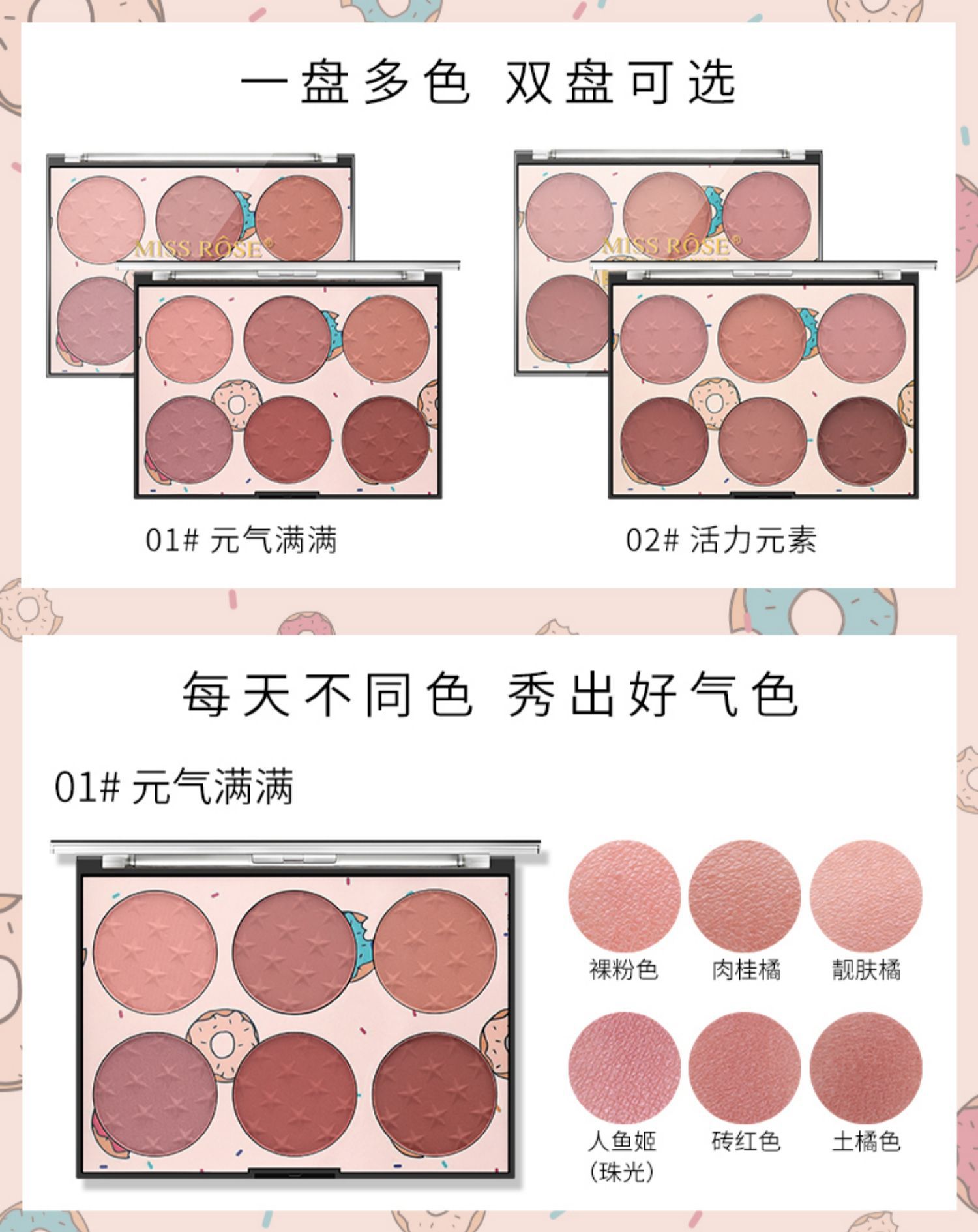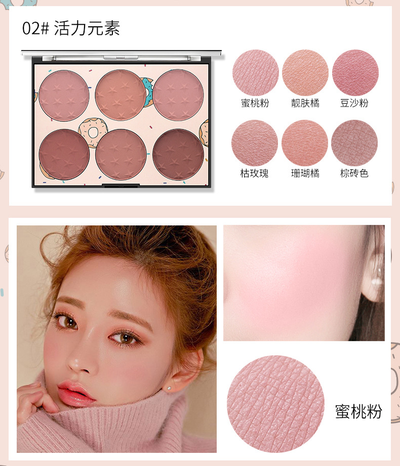 六色腮红哑光多色腮红盘自然晒红女高光修容一体盘