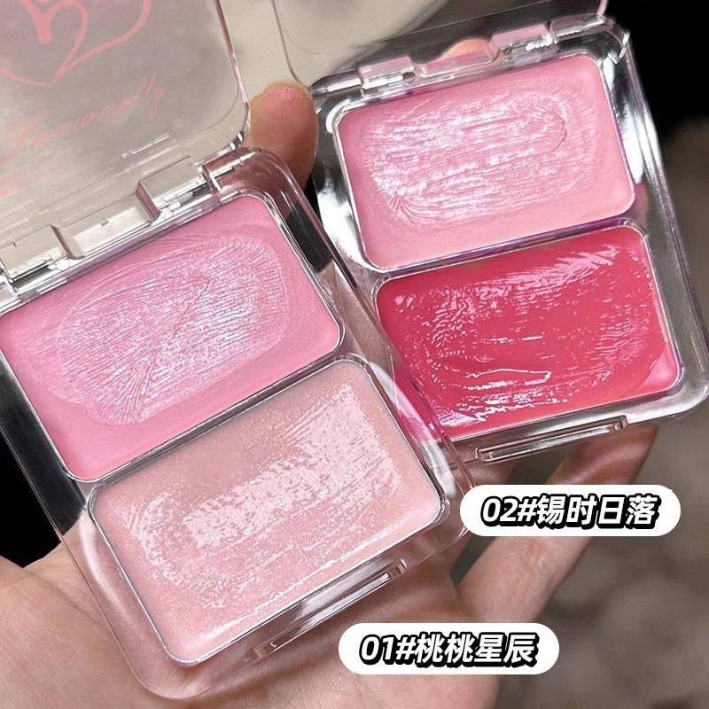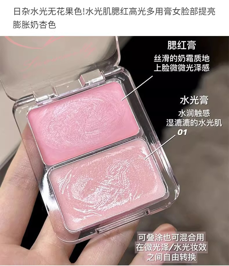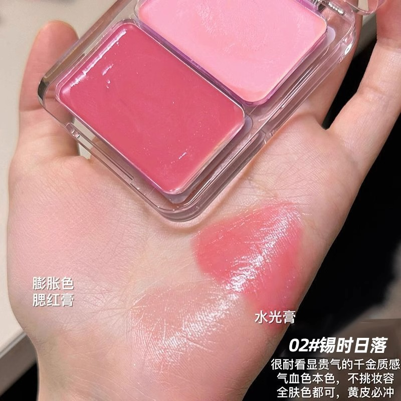水光肌腮红膏双拼双色多用高光膨胀色伪素颜自然立体清透水润腮红