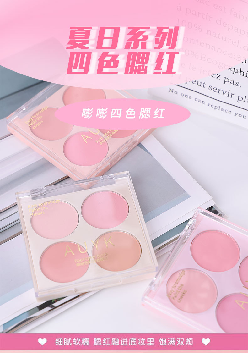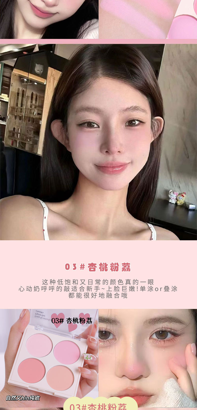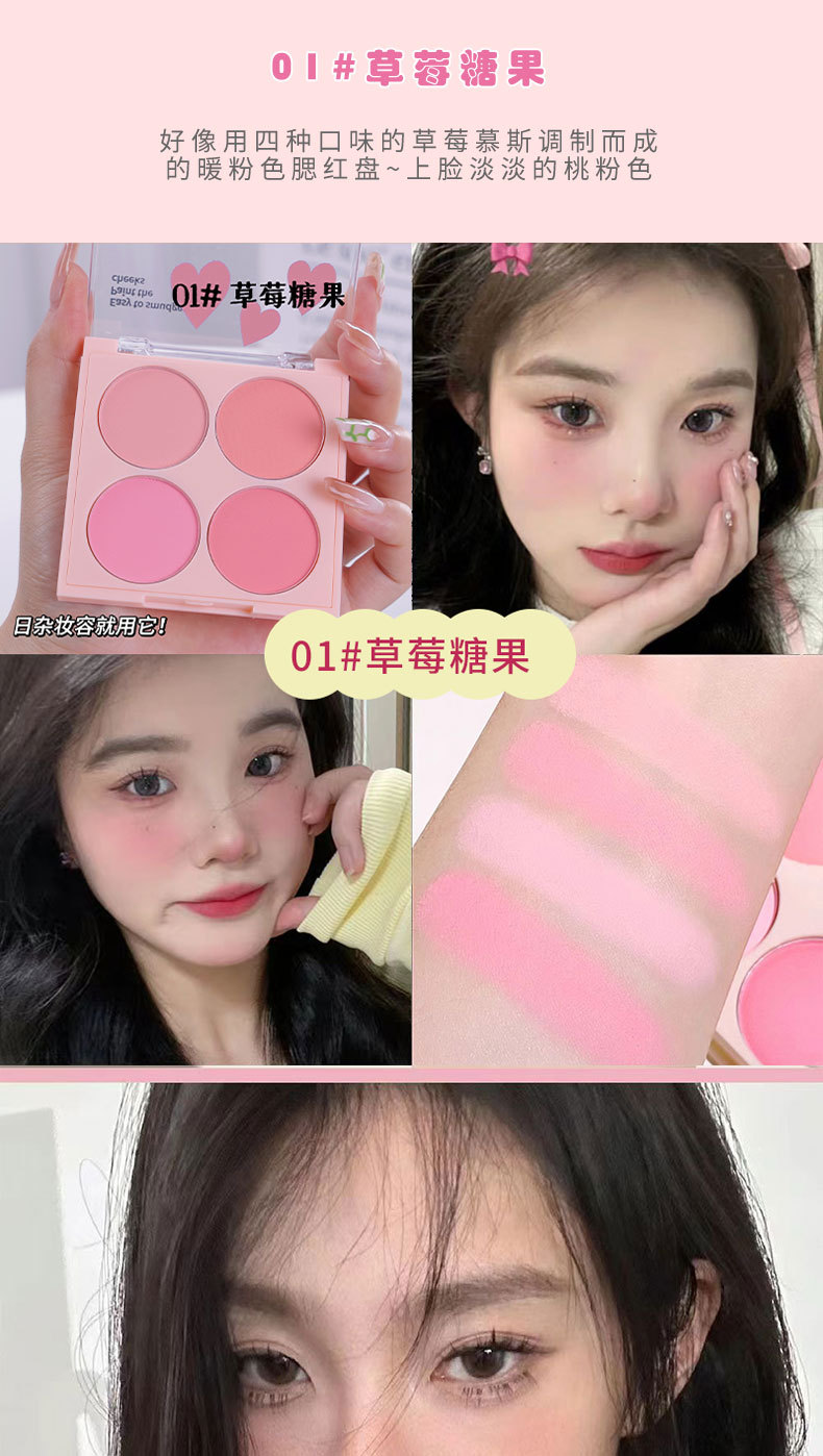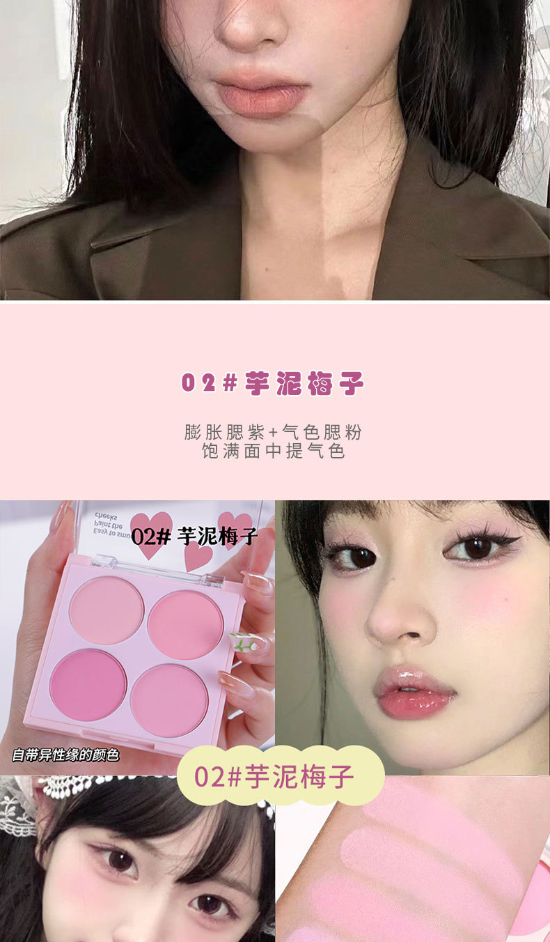 缤纷色彩四色腮红显白自然裸妆显色修容盘哑光腮紫胭脂