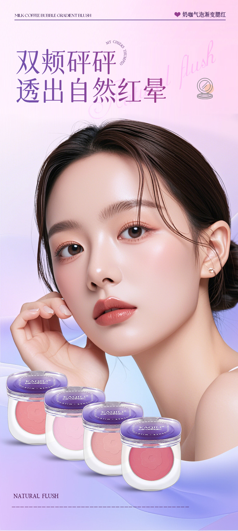 奶咖气泡渐变腮红收缩色哑光自然不飞粉持妆提色修容腮红膏