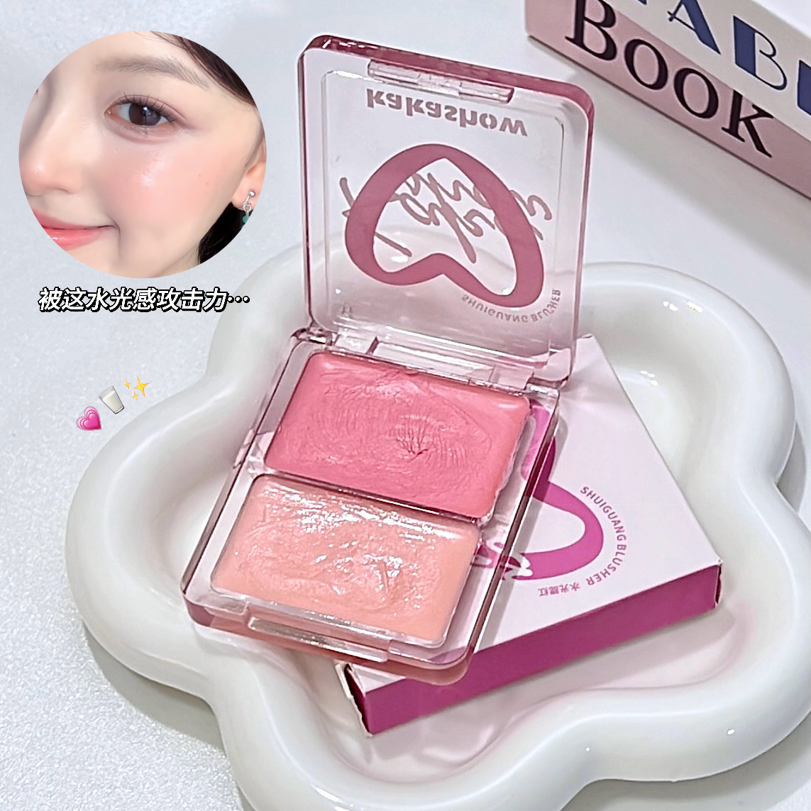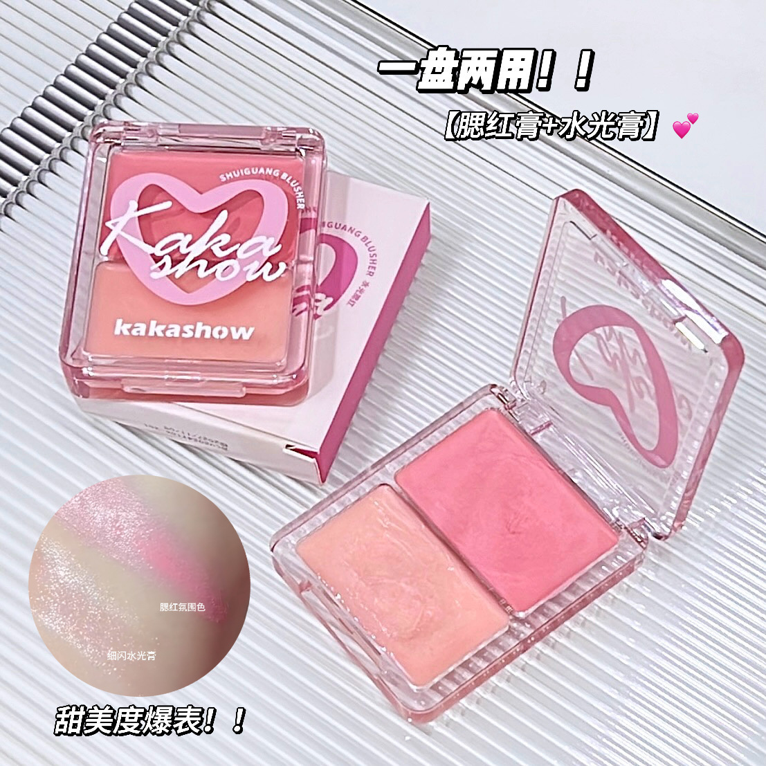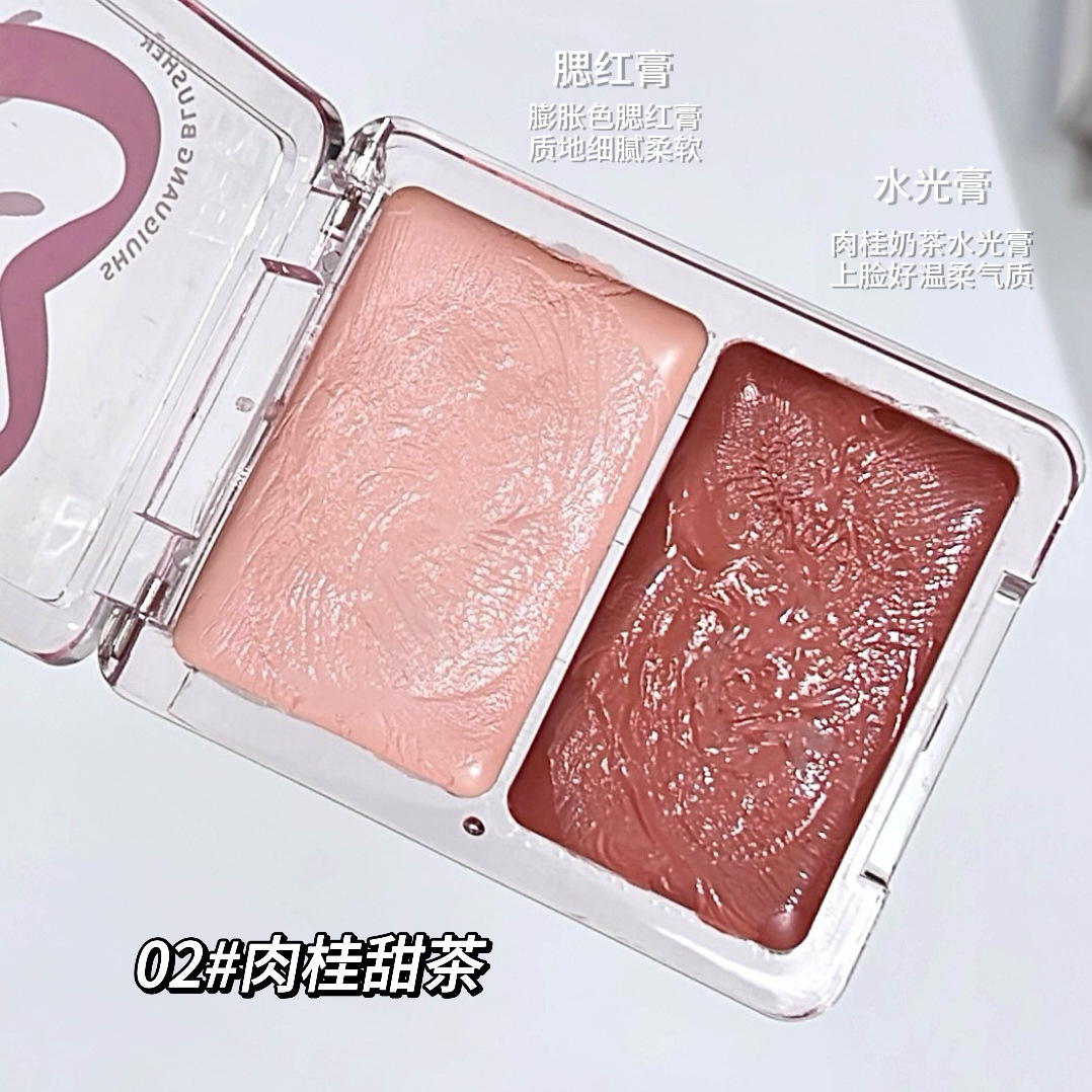 水光腮红膏双拼高光脸部自然提亮立体清透双用胭脂水光膏