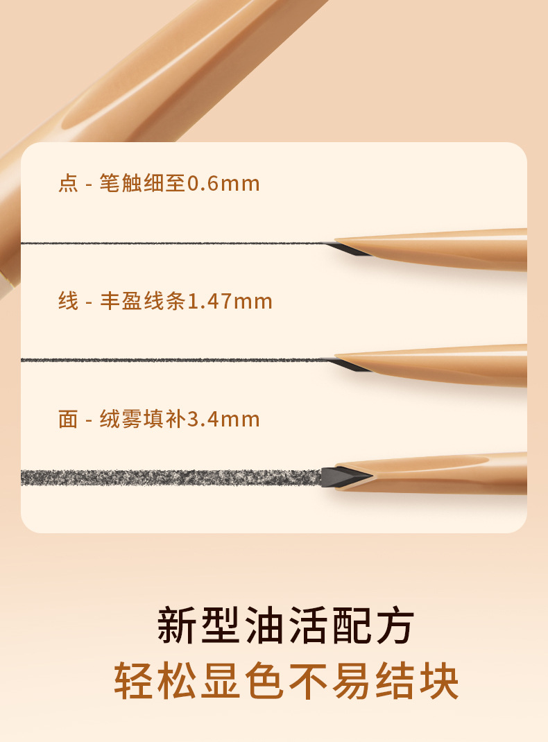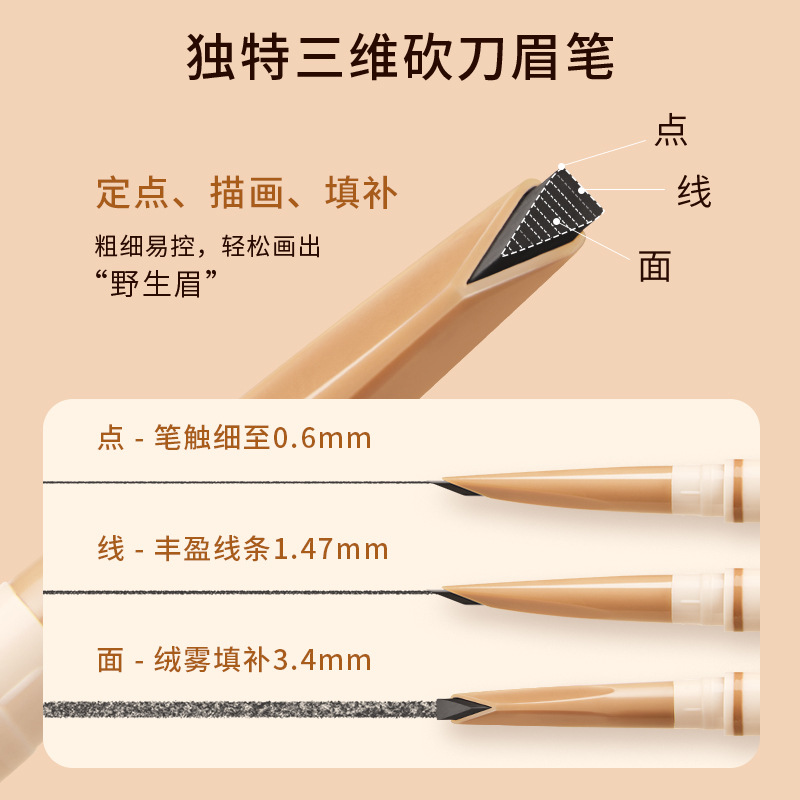 砍刀眉笔硬芯勾勒根根分明立体野生眉防水防汗免削自动眉笔女