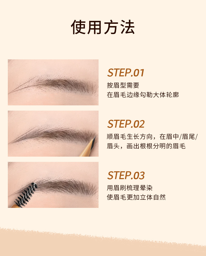 小金条眉笔女自然防水防汗持久不易脱色极细双头野生眉